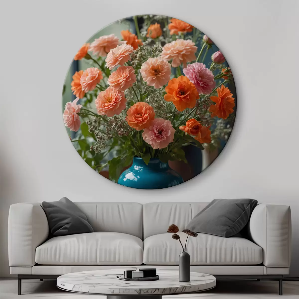 Кругла картина Букет помаранчевих квітів у синій вазі r38737