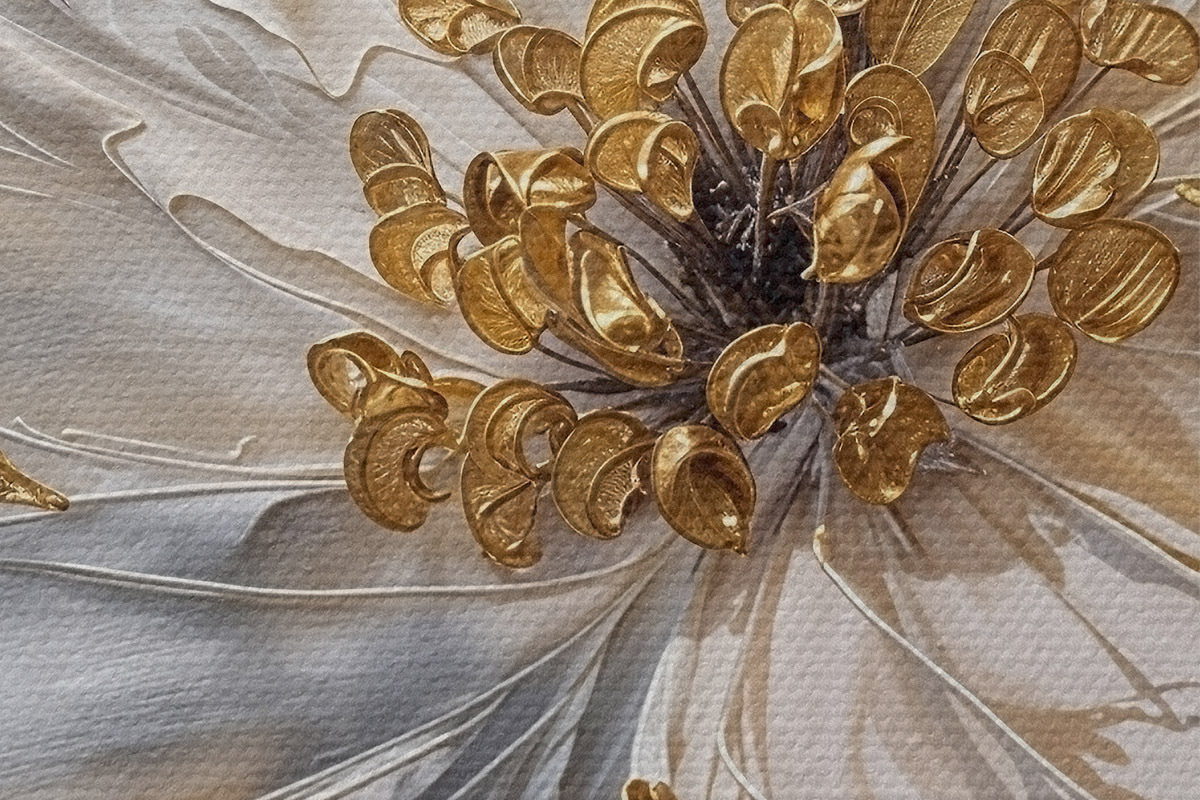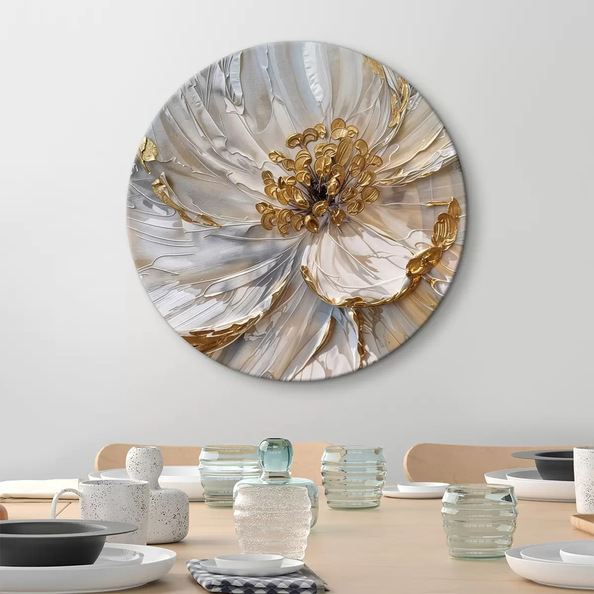 Кругла картина Крупним планом велика біла квітка з жовтими тичинками в центрі, художня прикраса, написана олією Nr r38755