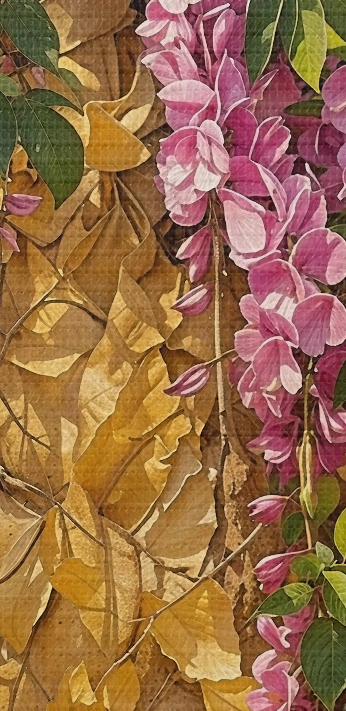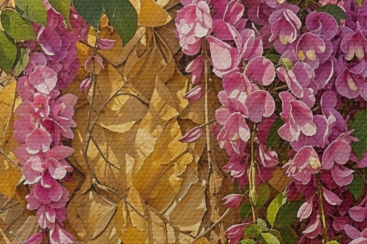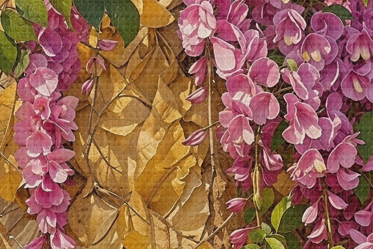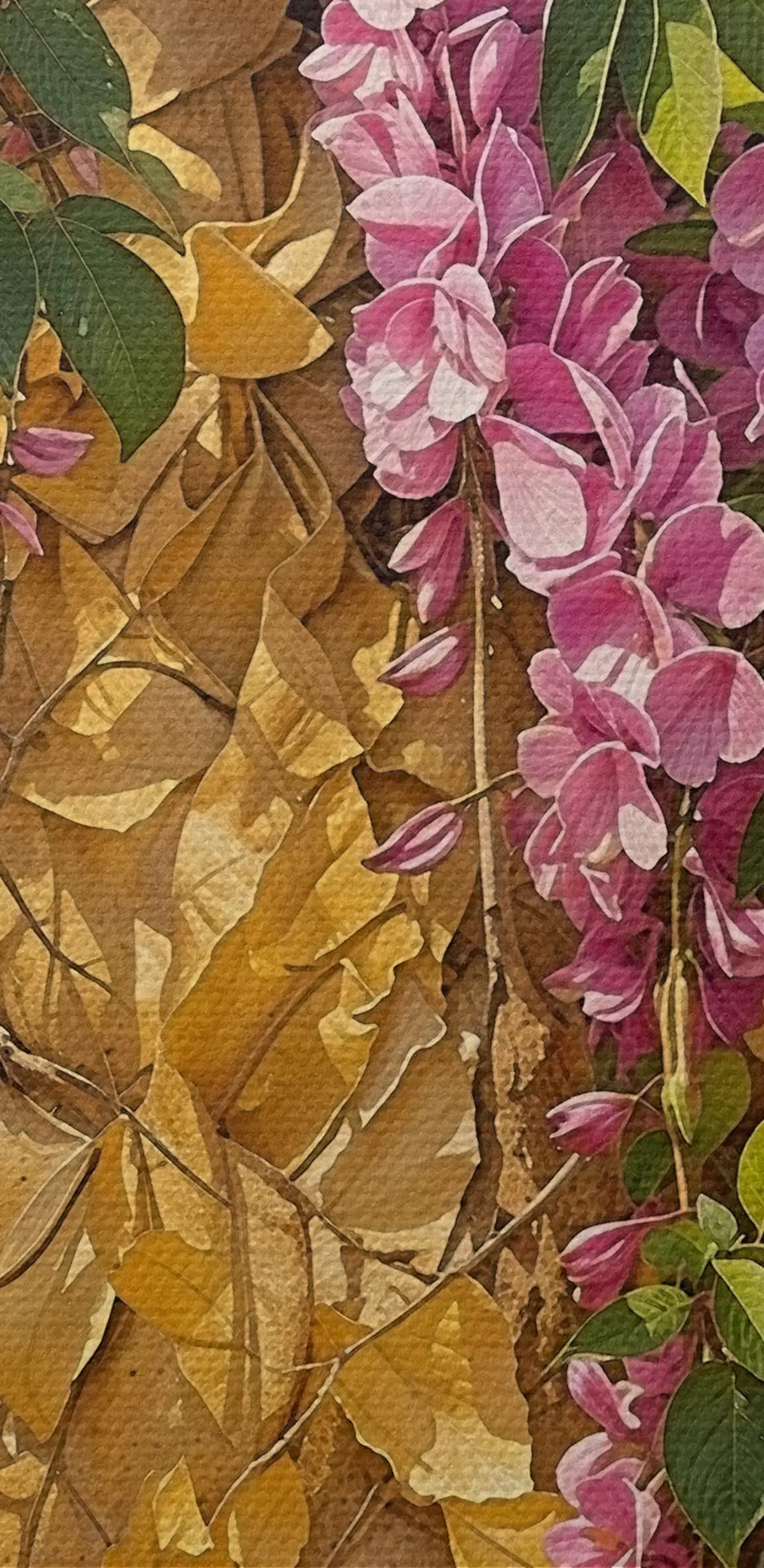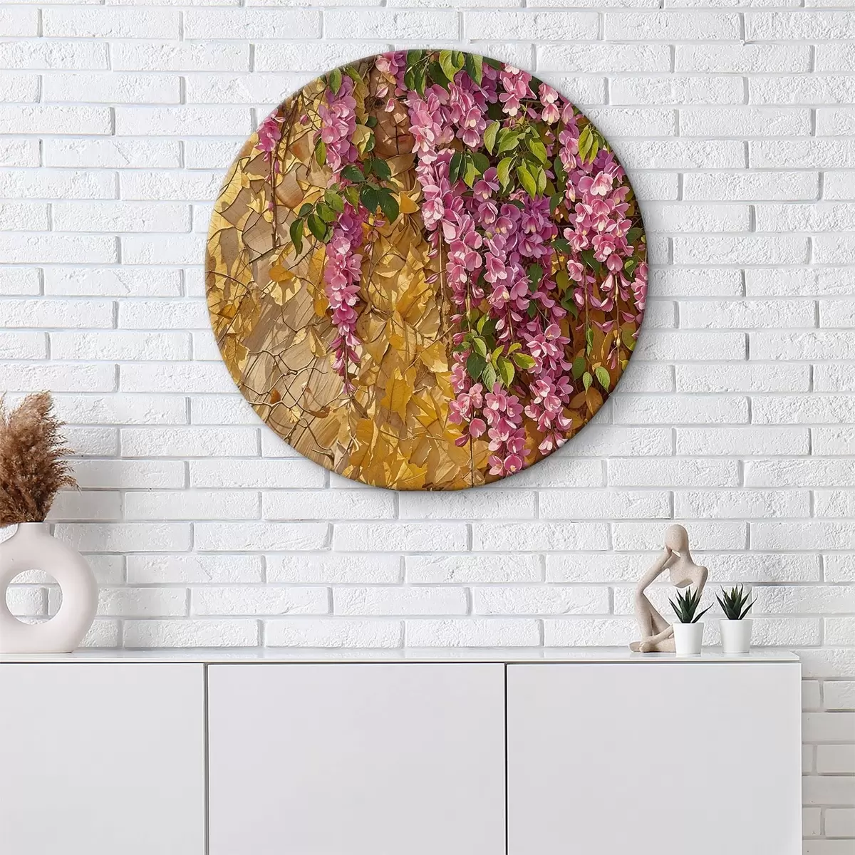 Кругла картина Звисаючі рожеві квіти гліцинії на фактурному тлі Nr r38756