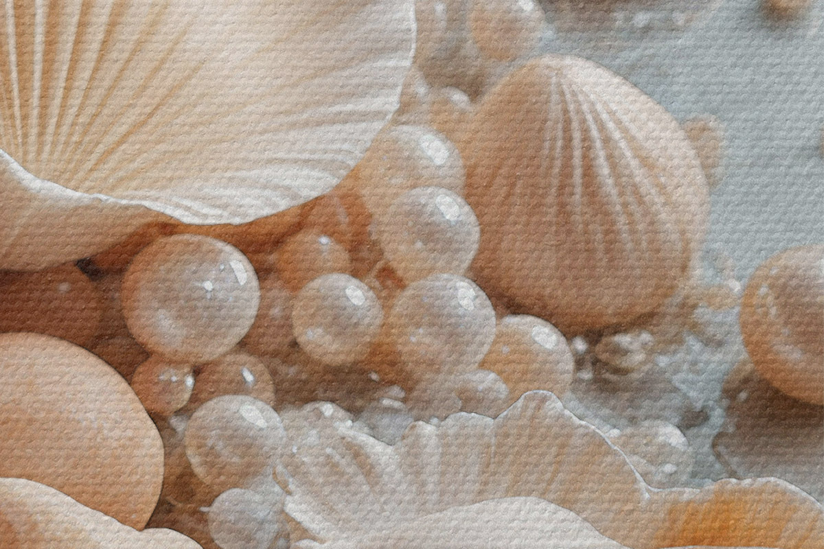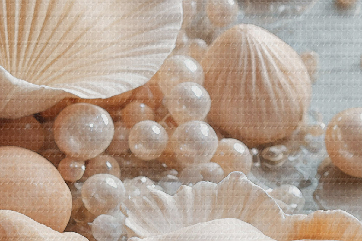 Кругла картина Асорті з черепашок і перлів на світло-блакитному тлі Nr r38769