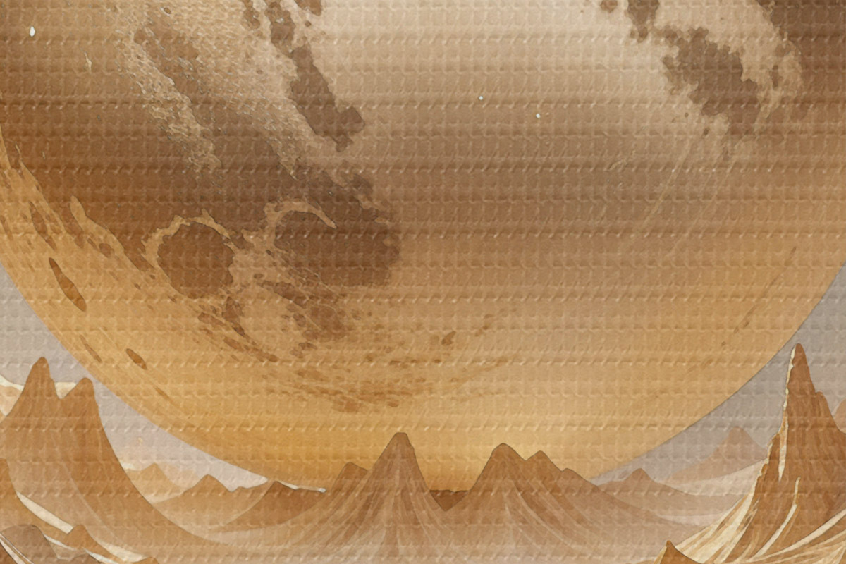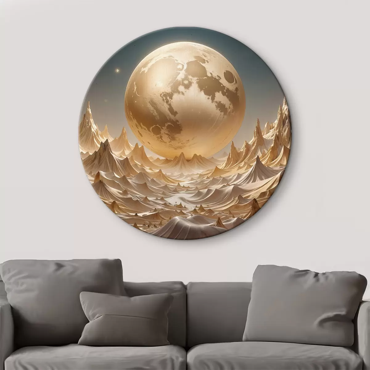 Кругла картина Сяйво повного місяця над сюрреалістичним гірським пейзажем з вершинами Nr r38775
