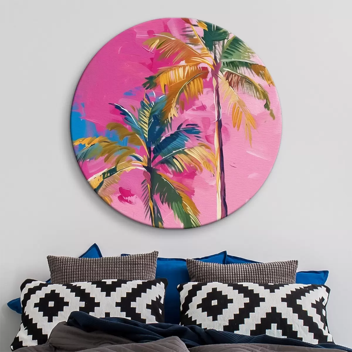 Кругла картина Різнокольорові пальми Nr r38781