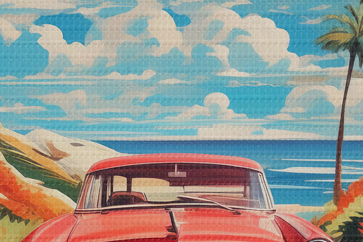 Кругла картина Червоний ретро-автомобіль на пляжі r38806