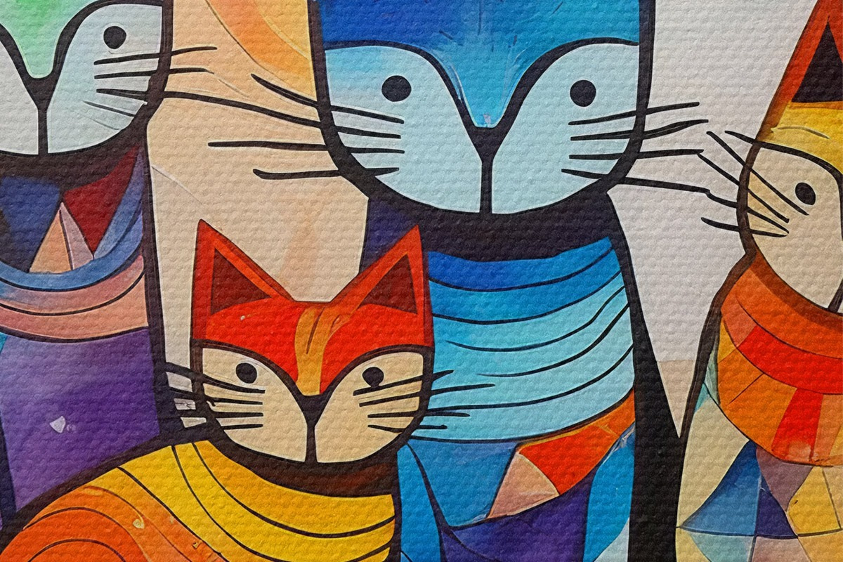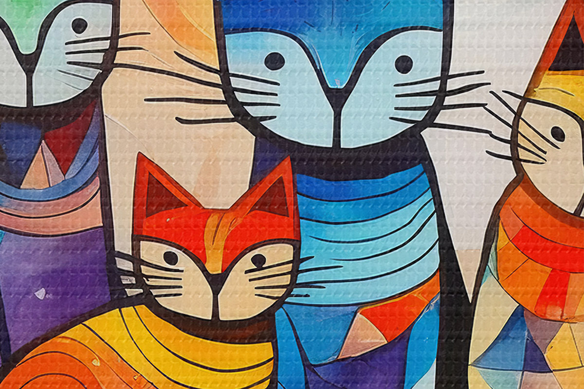 Кругла картина Різнобарвна абстракція з цікавими котиками r38815