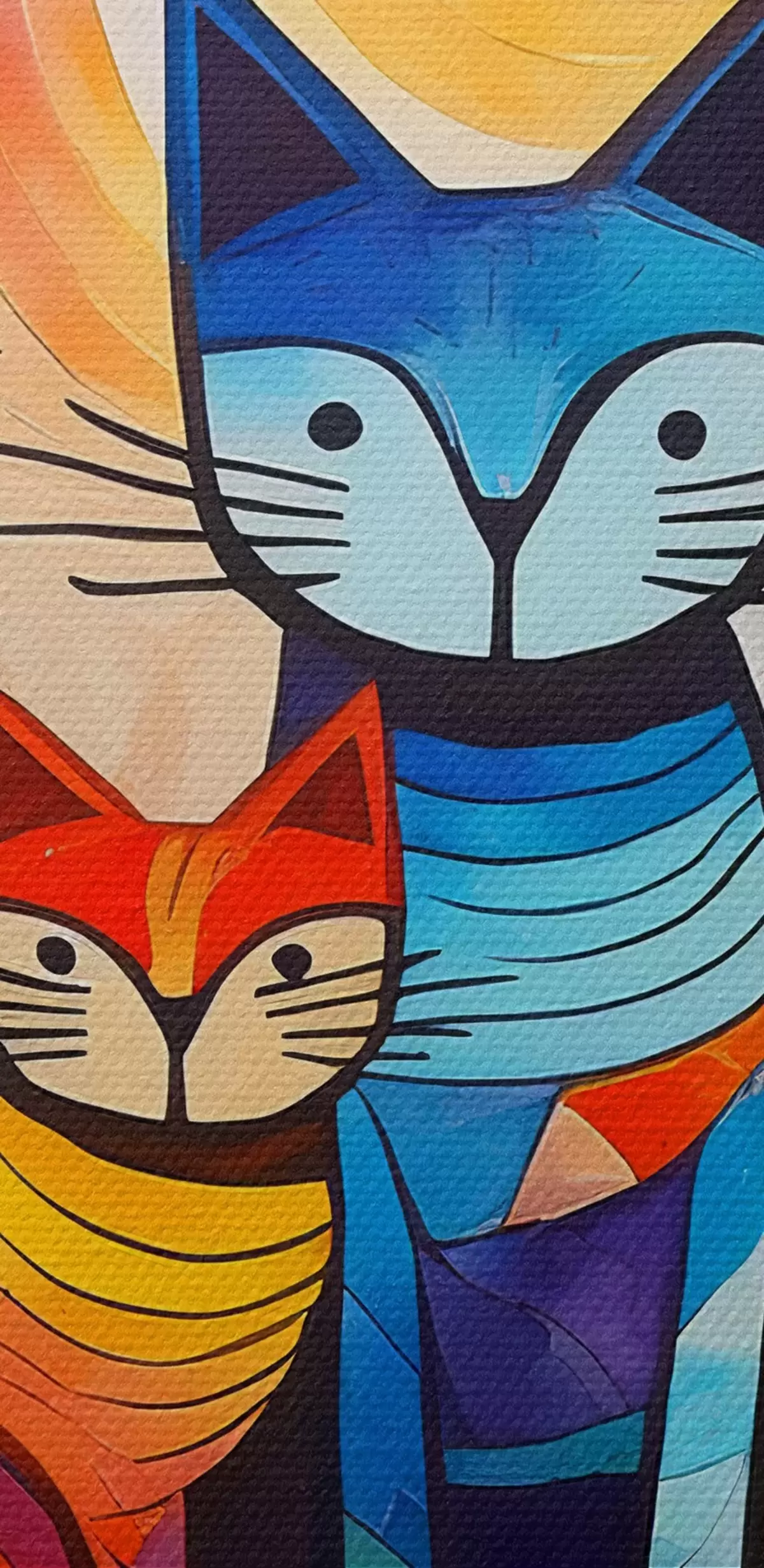 Кругла картина Різнобарвна абстракція з цікавими котиками r38815