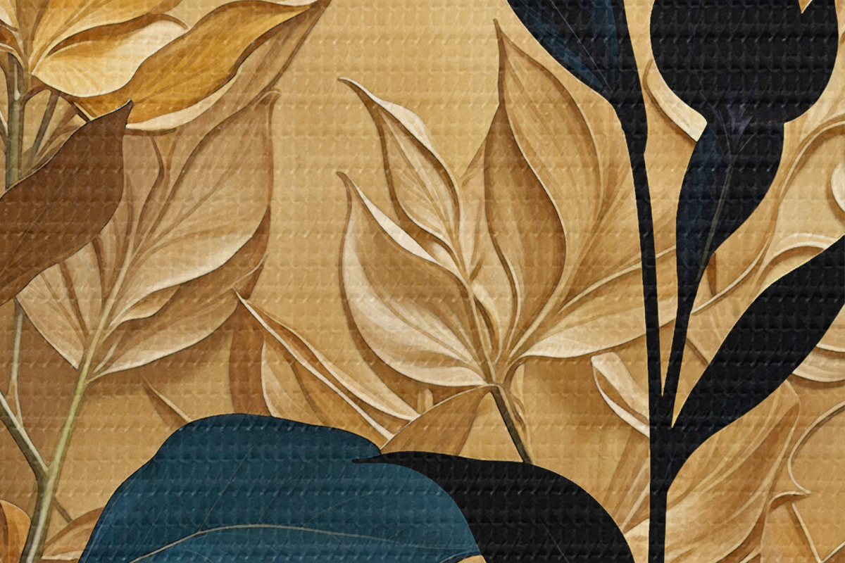 Кругла картина Абстрактна квіткова композиція з великим листям і темними силуетними формами Nr r38822
