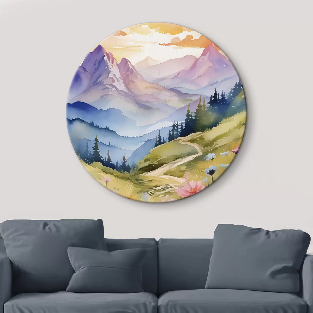 Кругла картина Пейзаж з квітами та горами Nr r38839