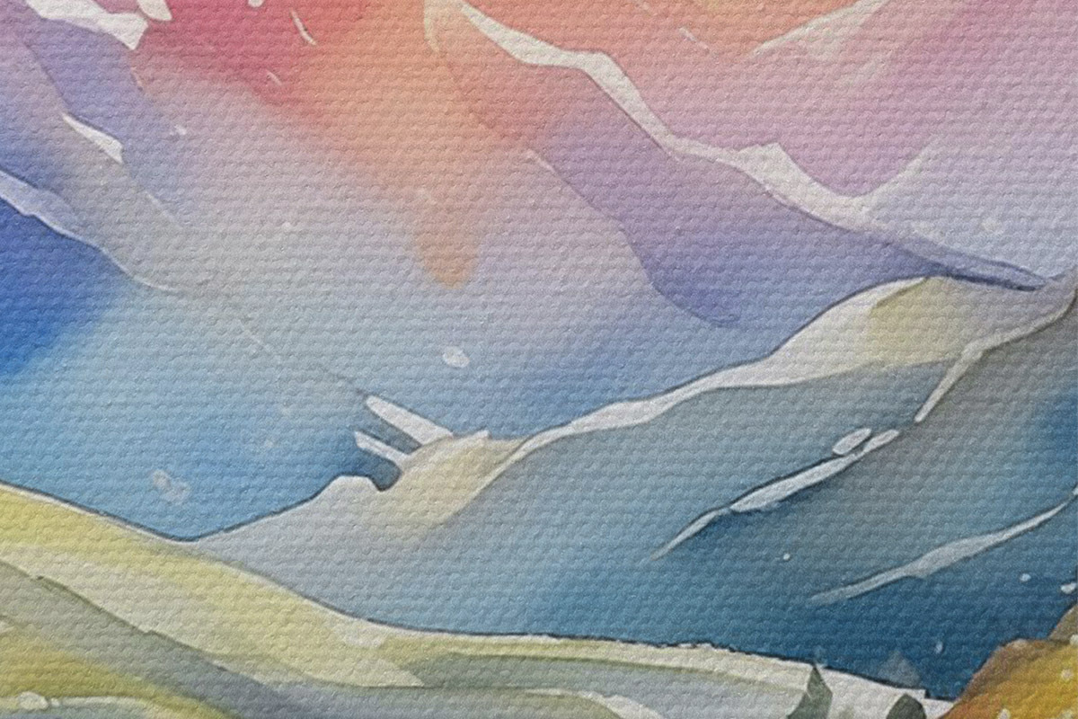 Кругла картина Літні гори, барвистий захід сонця, квіти, акварель, природні пейзажі Nr r38840