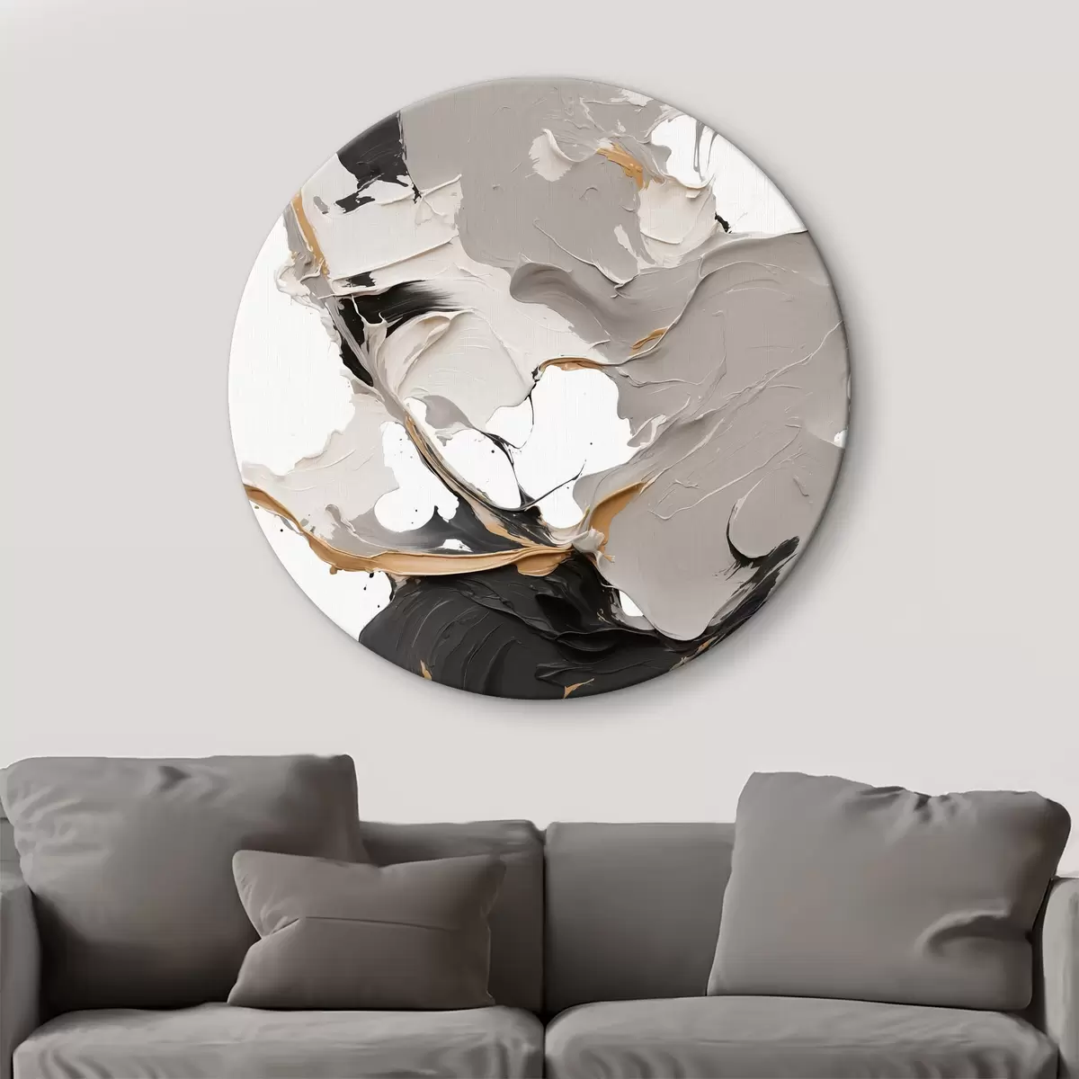 Кругла картина Абстрактний живопис у біло-сірих тонах r38855