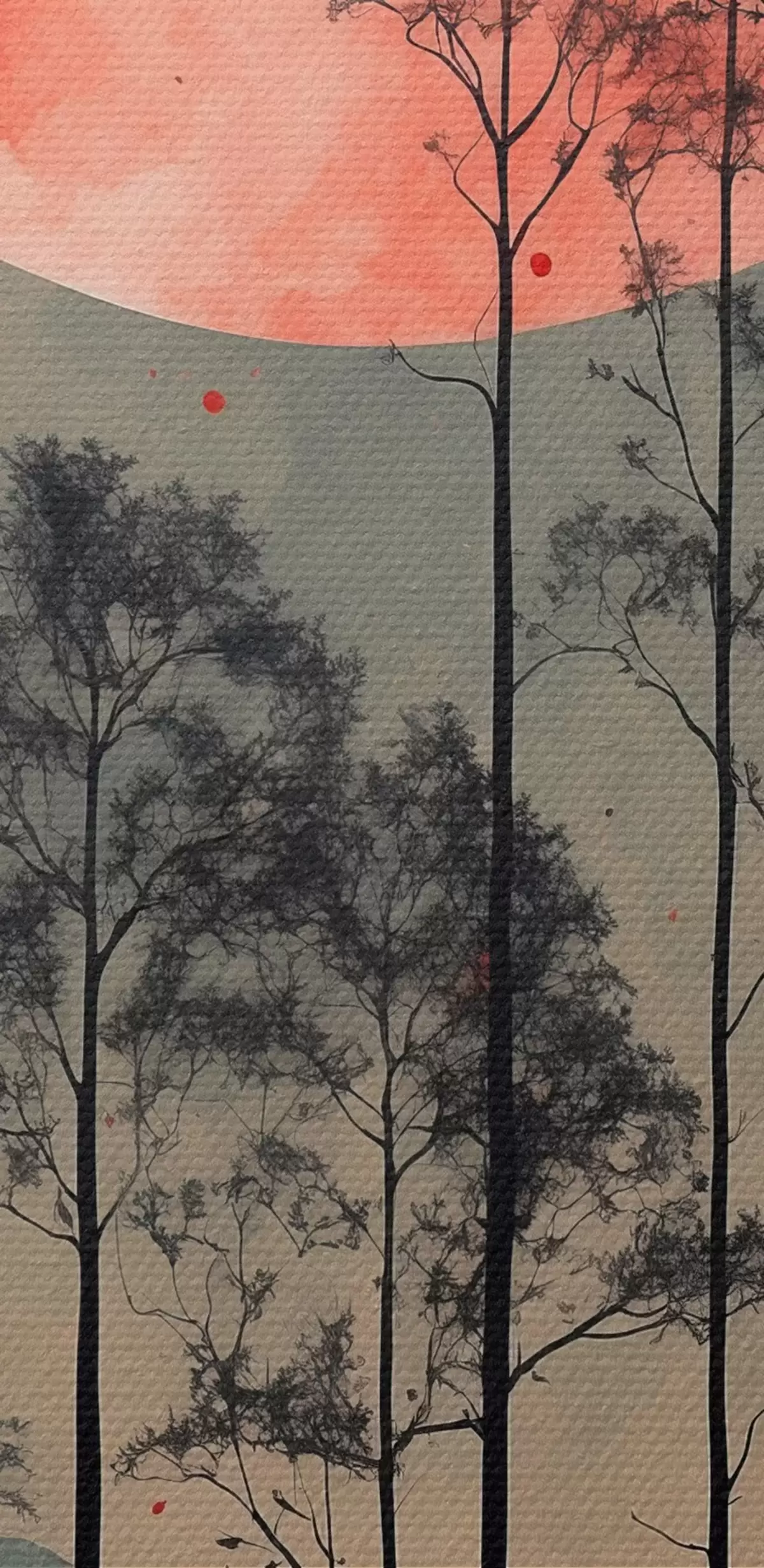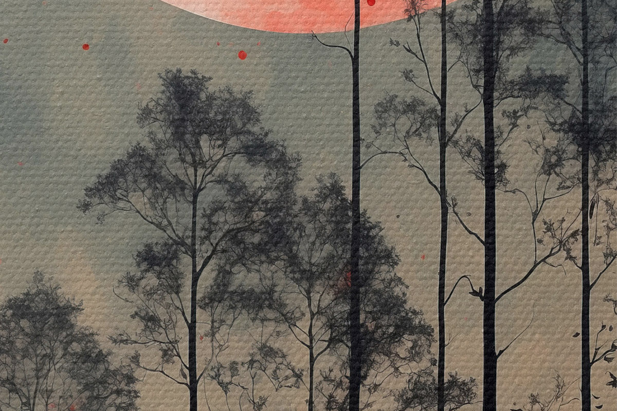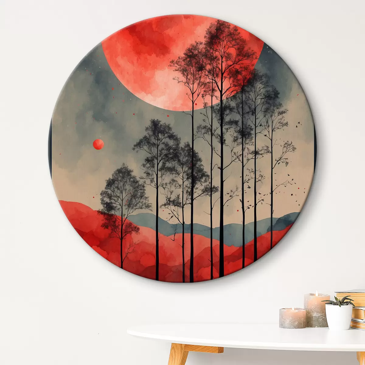 Кругла картина Кривавий повний місяць над лісом Nr r38862