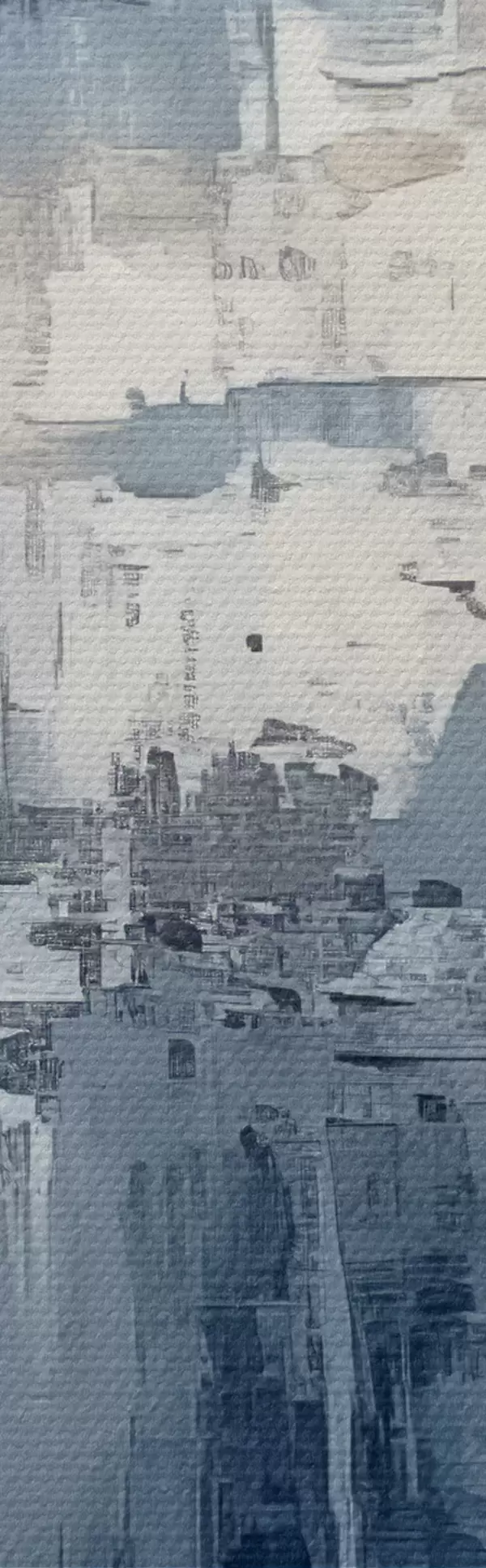 Кругла картина Абстрактний мінімалістичний олійний живопис, потертий, геометричний, пляма, синьо-білий колір Nr r38906