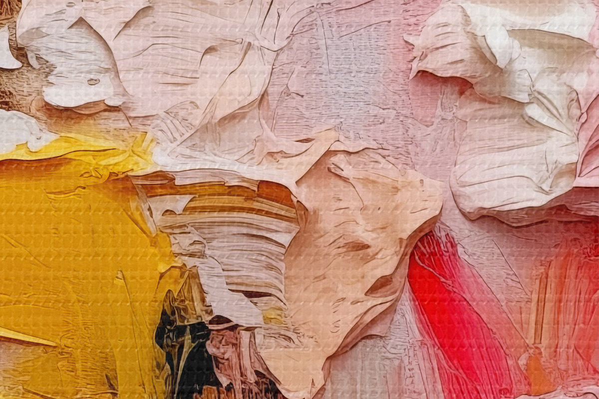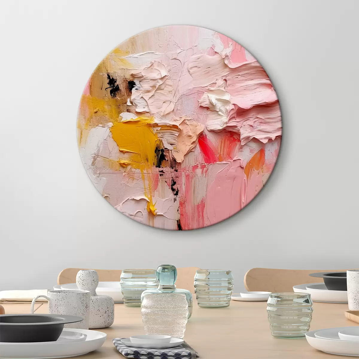 Кругла картина Абстрактний експресіонізм великими мазками рожевого, жовтого та білого кольорів Nr r38916