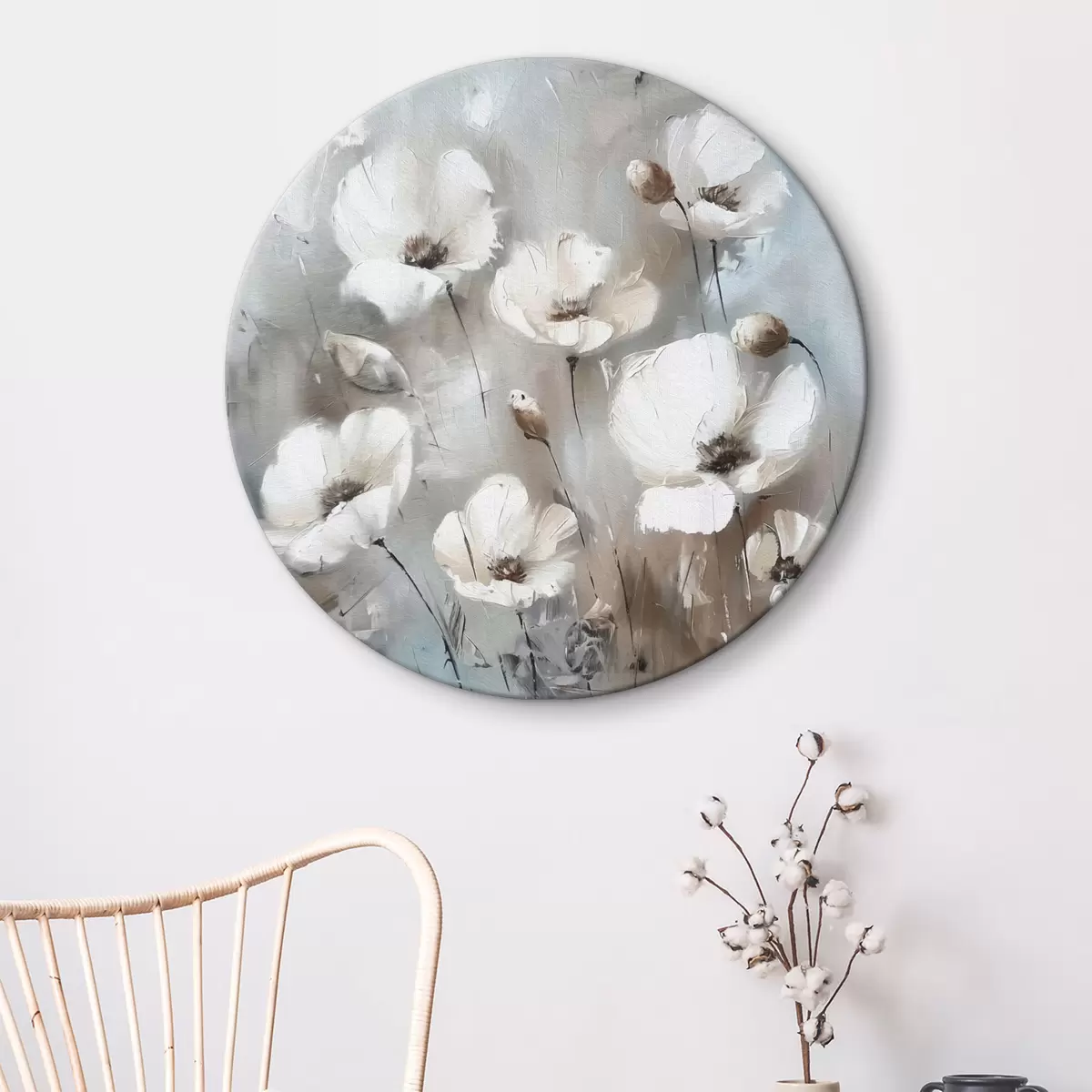 Кругла картина Білі польові квіти завод друкованих текстури Nr r38925