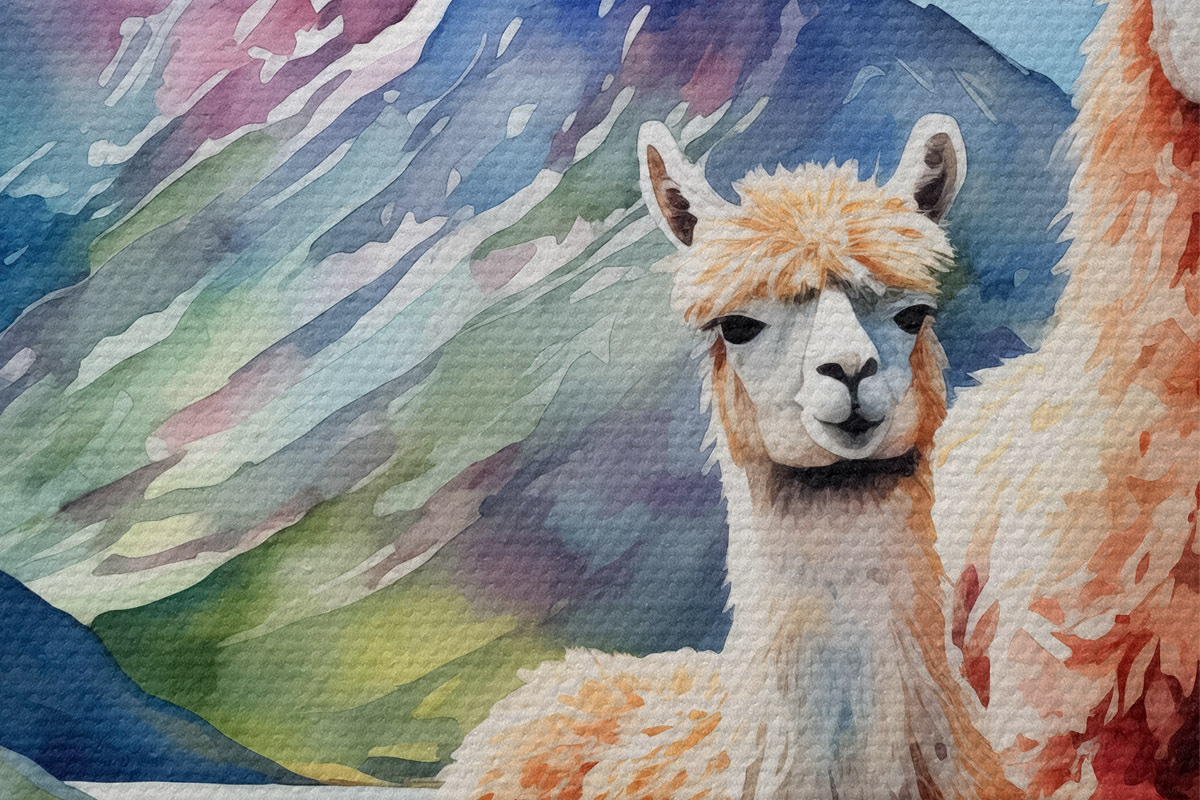 Кругла картина Лами насолоджуються безтурботними гірськими пейзажами Nr r38934