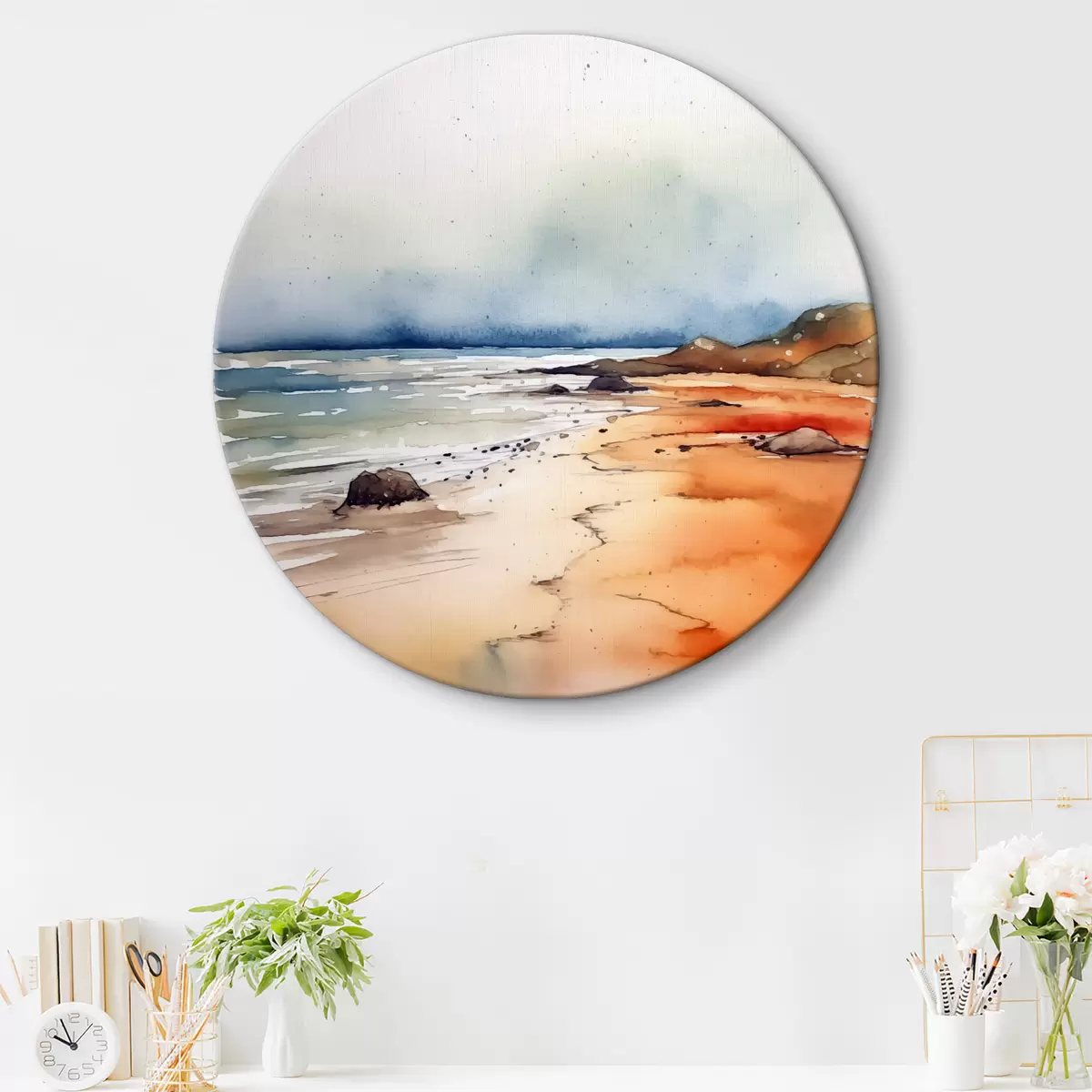 Кругла картина Море і пляж, дощ, акварель, бризки, краєвид, краєвид, синій, оранжевий колір Nr r38936