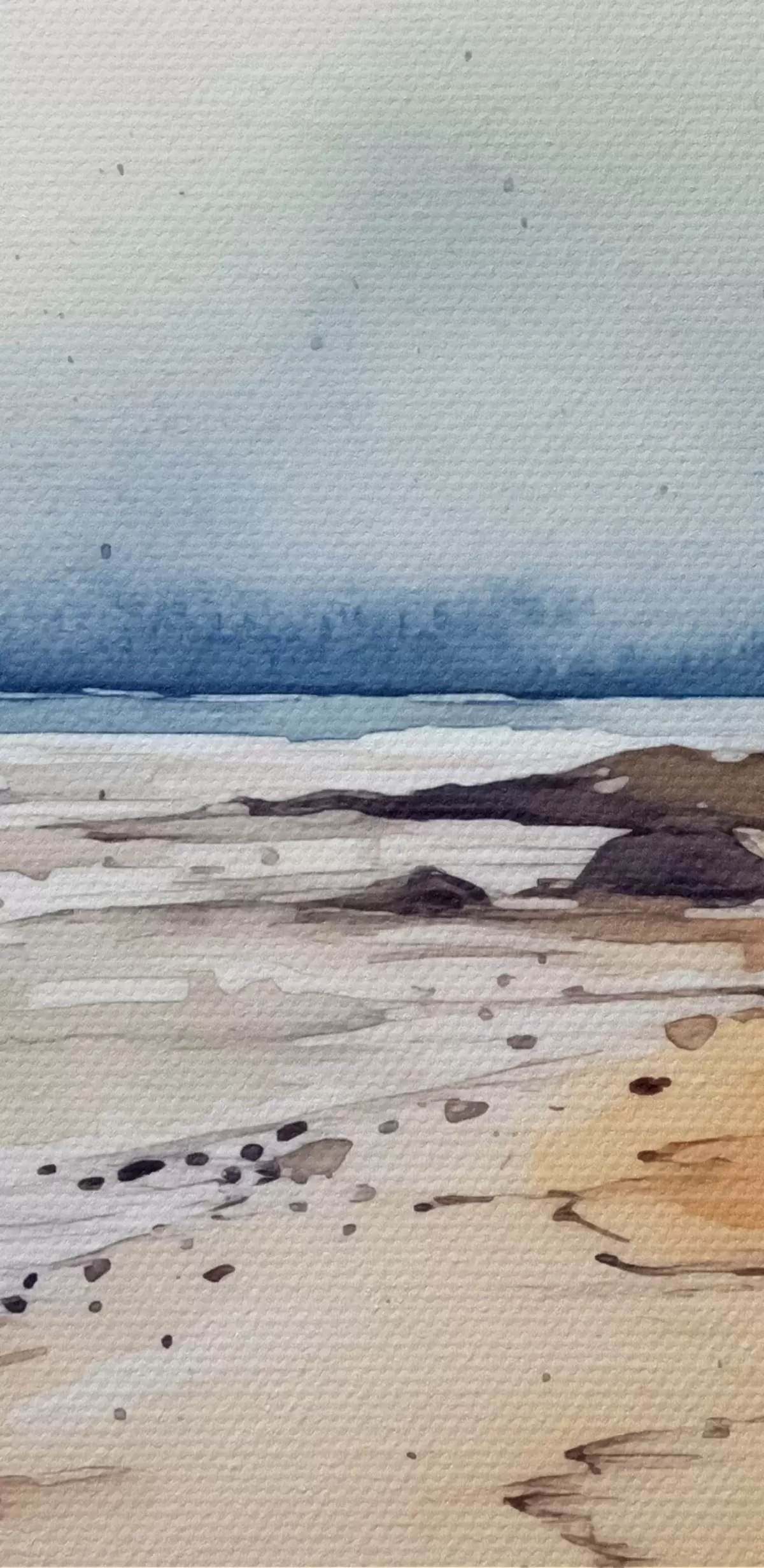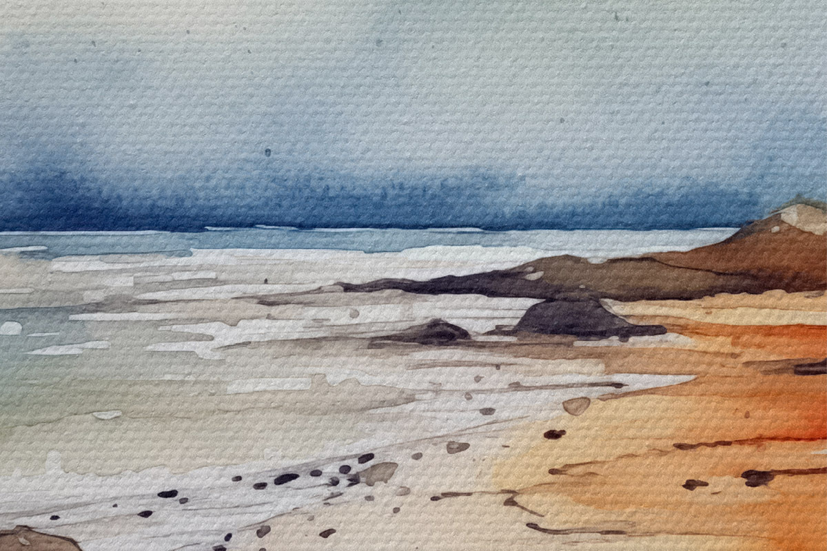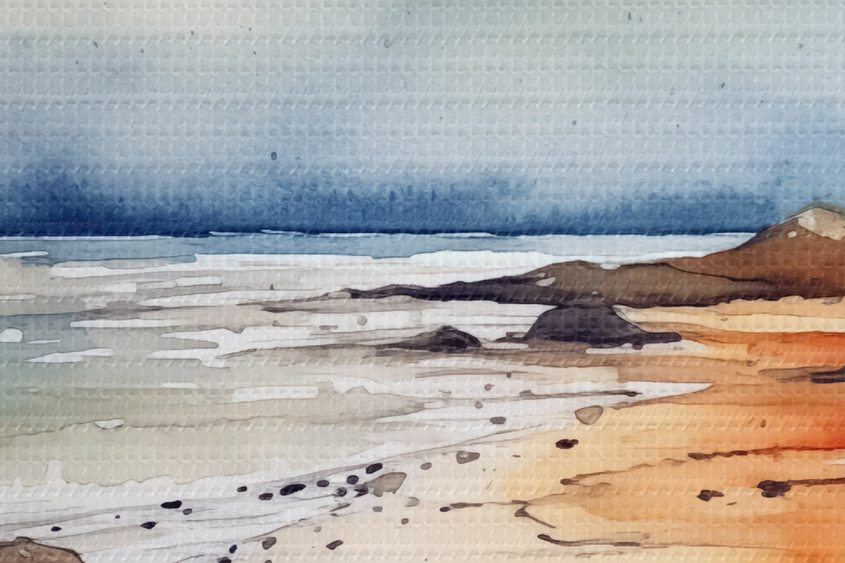 Кругла картина Море і пляж, дощ, акварель, бризки, краєвид, краєвид, синій, оранжевий колір r38936