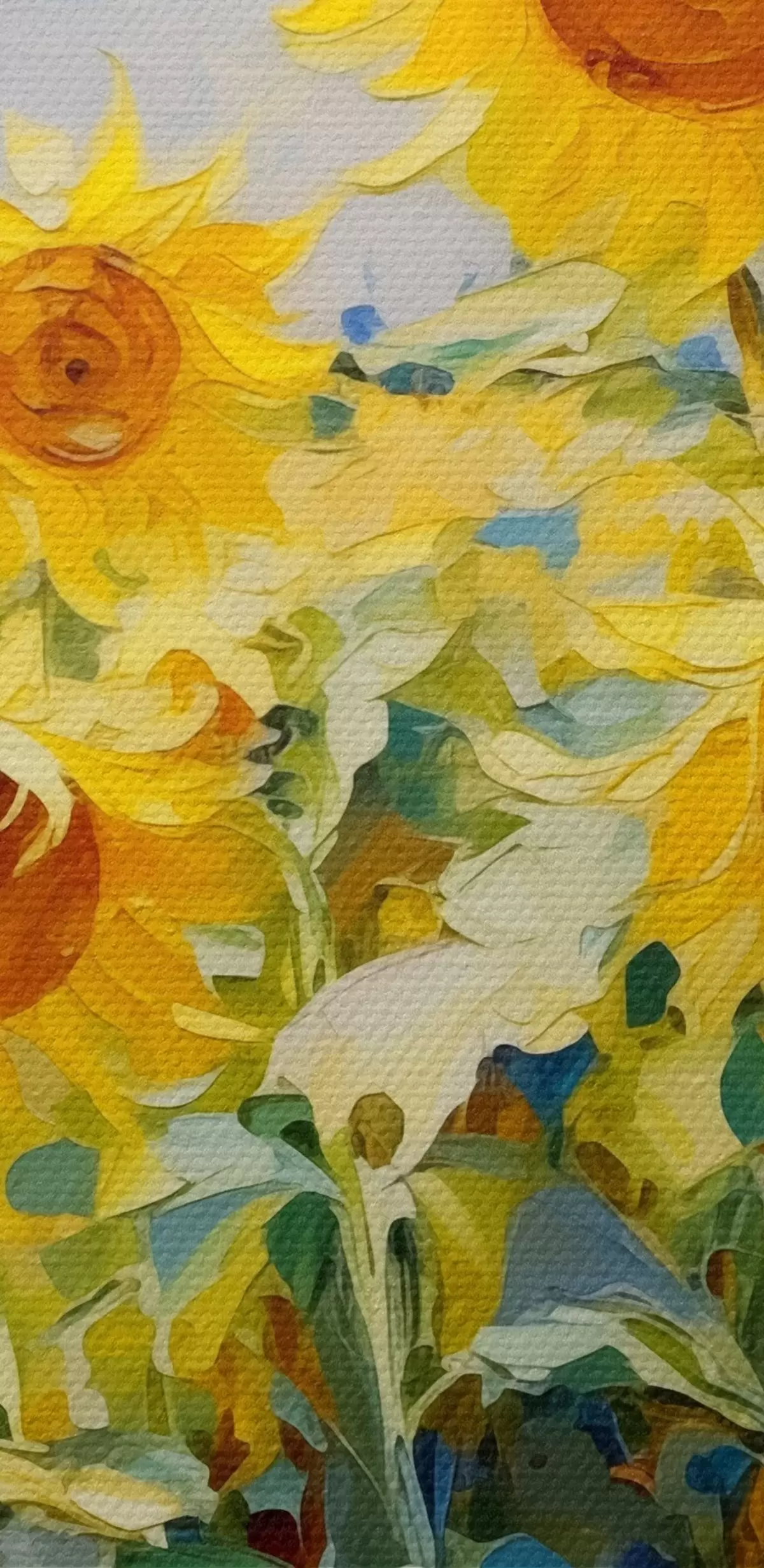 Кругла картина Поле соняшників олійного живопису, жовто-блакитного кольору Nr r38953
