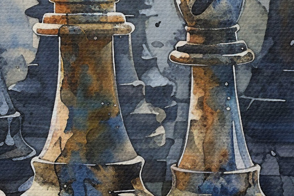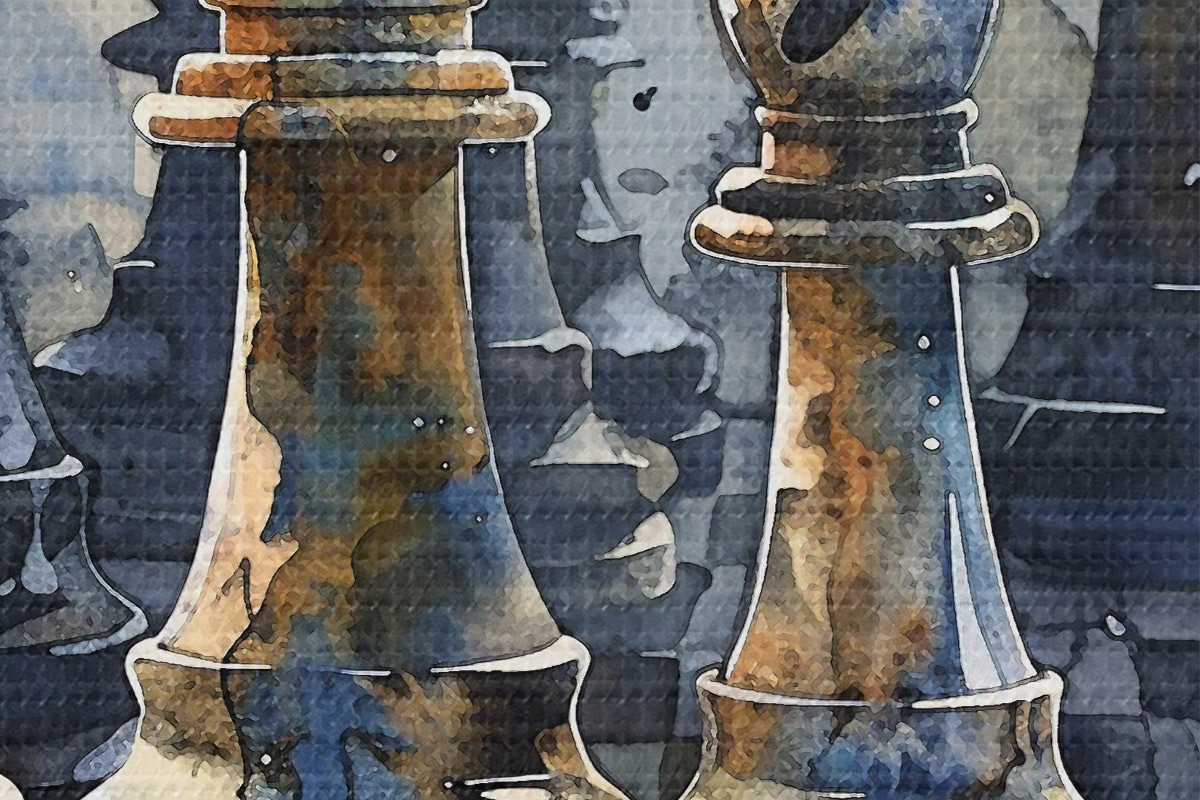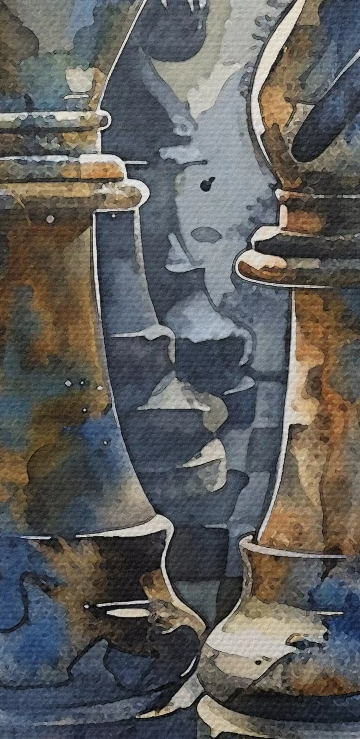 Кругла картина Акварельний живопис крупним планом шахів із металу чи каменю з детальним дизайном і текстурою Nr r38960