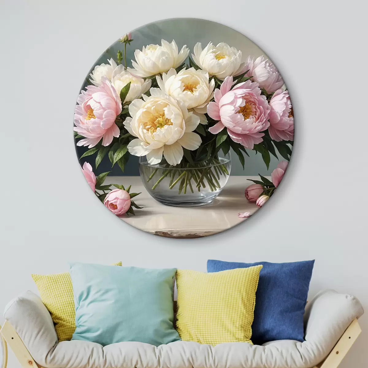 Кругла картина Ваза з білими та рожевими півоніями Nr r38967
