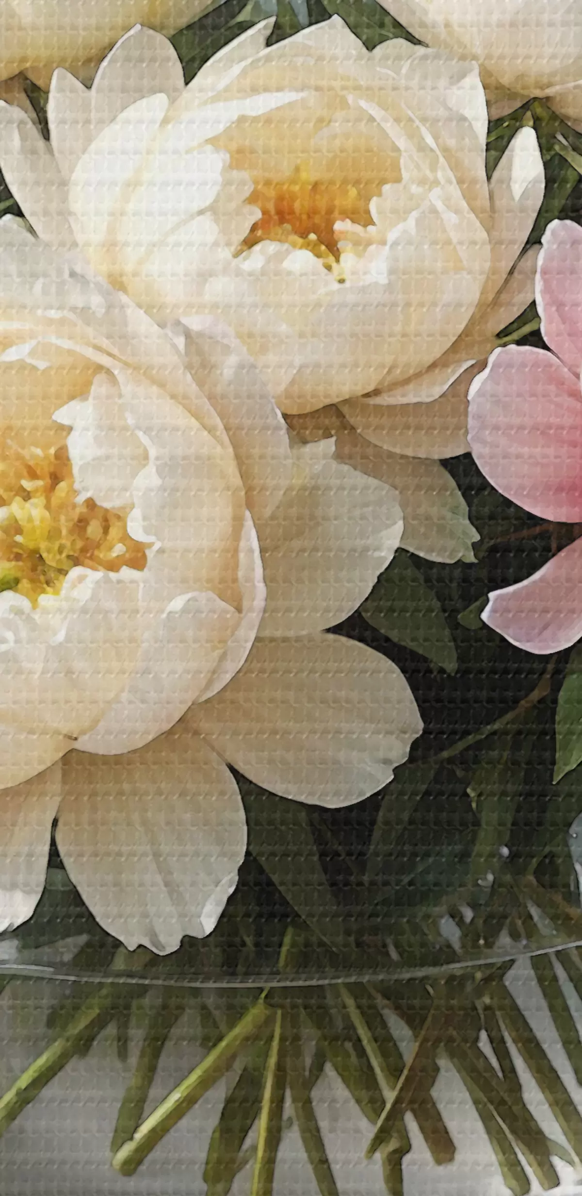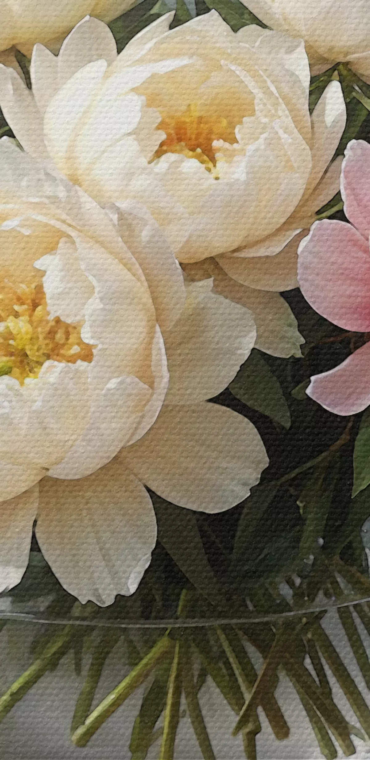 Кругла картина Ваза з білими та рожевими півоніями r38967