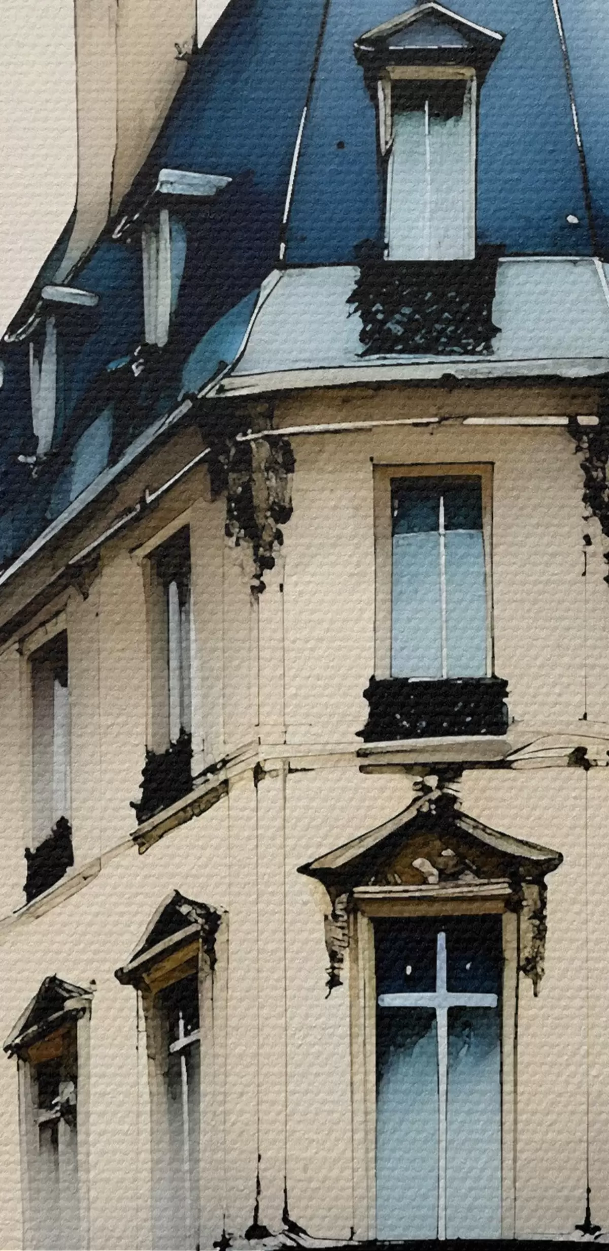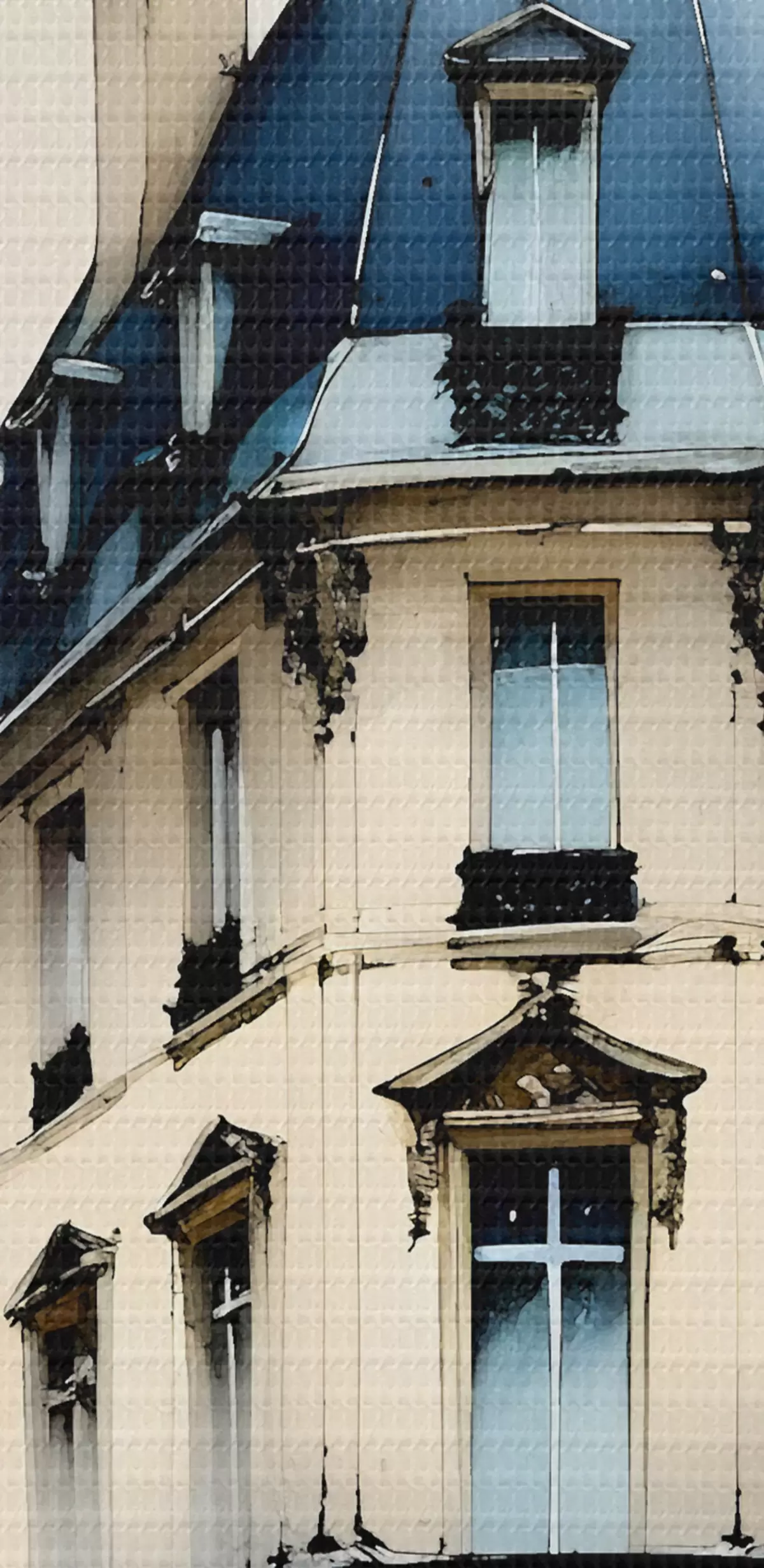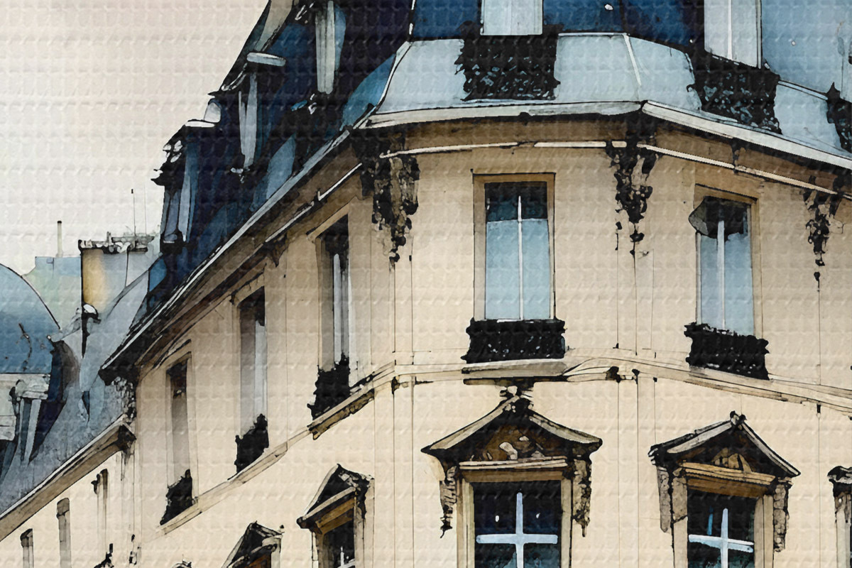 Кругла картина Картина аквареллю історичної будівлі з вигнутим фасадом і декоративними архітектурними елементами r38975