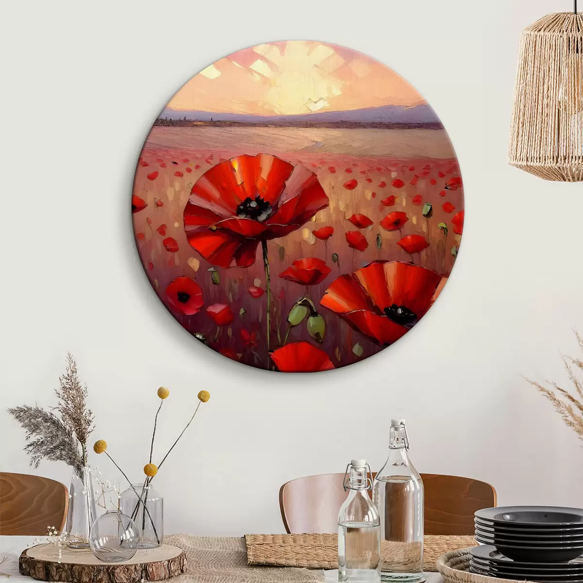 Кругла картина Яскравий захід сонця над квітучим полем Nr r38977