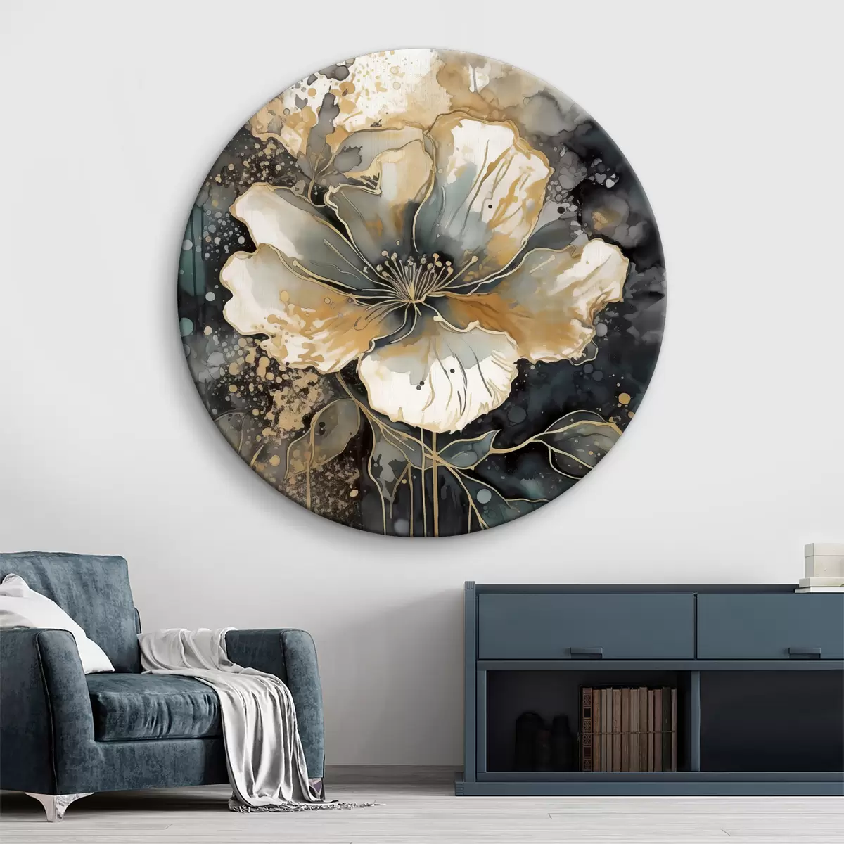 Кругла картина Анотація квітка на фоні аквареллю з бризками фарби Nr r38989