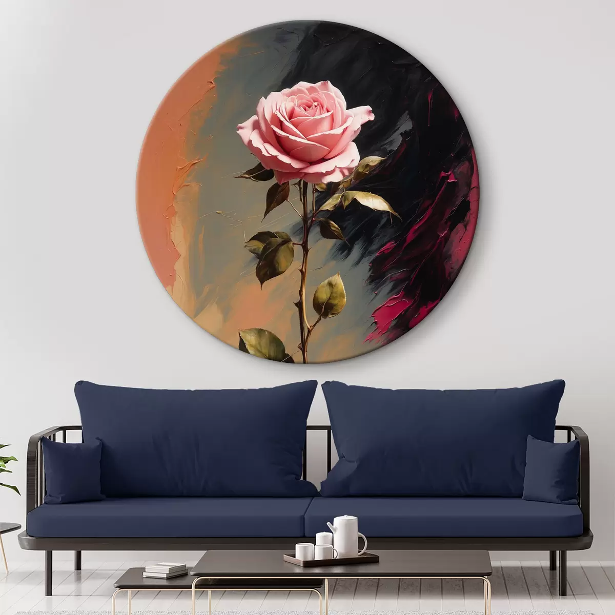 Кругла картина Рожева троянда r39004