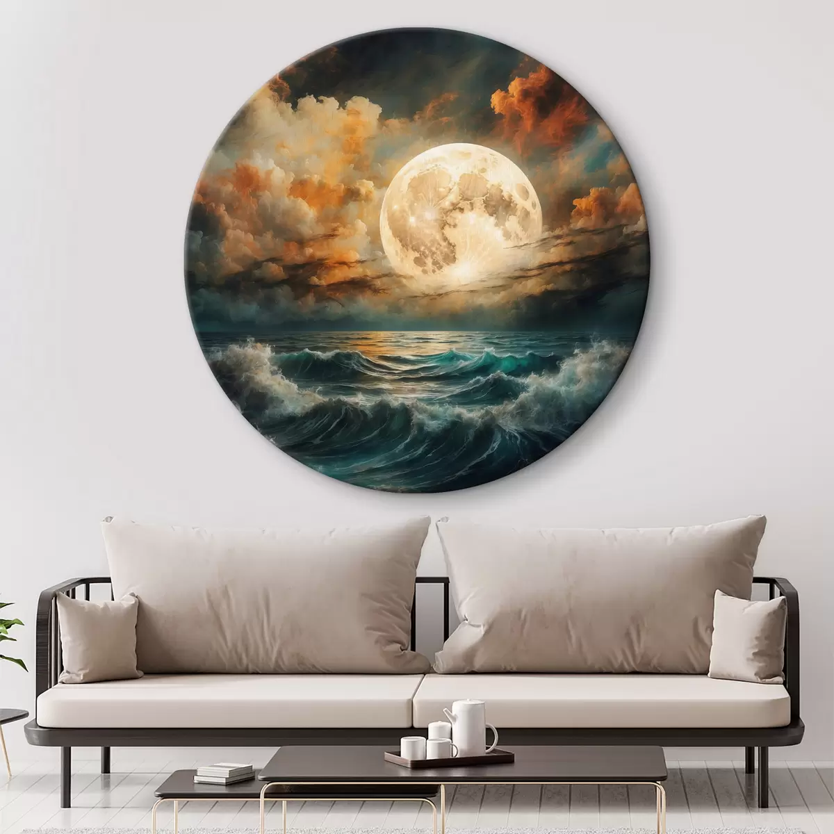 Кругла картина Повний місяць над бурхливим морем Nr r39007