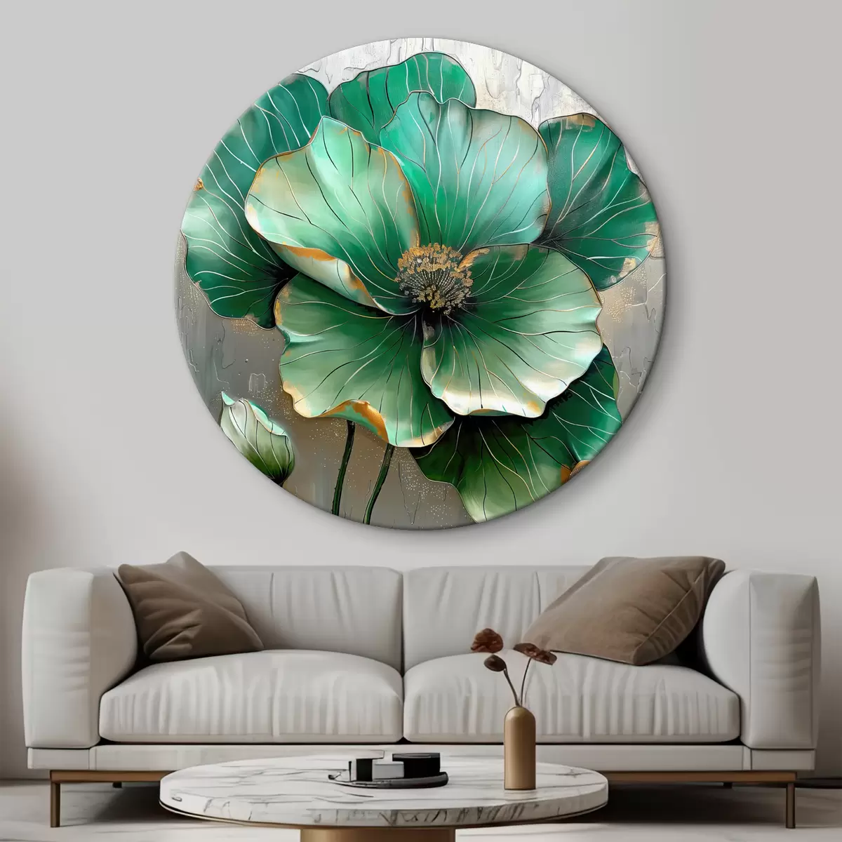 Кругла картина Велика квітка зеленого кольору Nr r39013