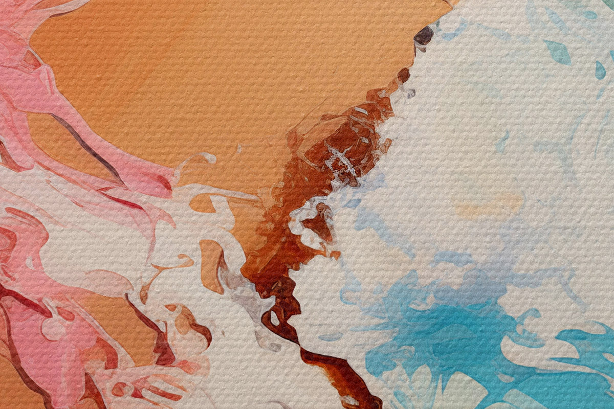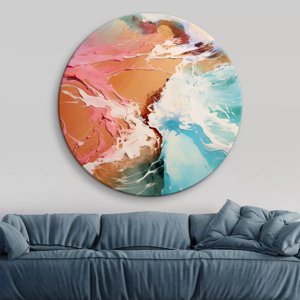 Кругла картина Абстрактна картина маслом морська хвиля та піщаний берег, блакитний, блакитний, рожевий, жовтий колір Nr r39123