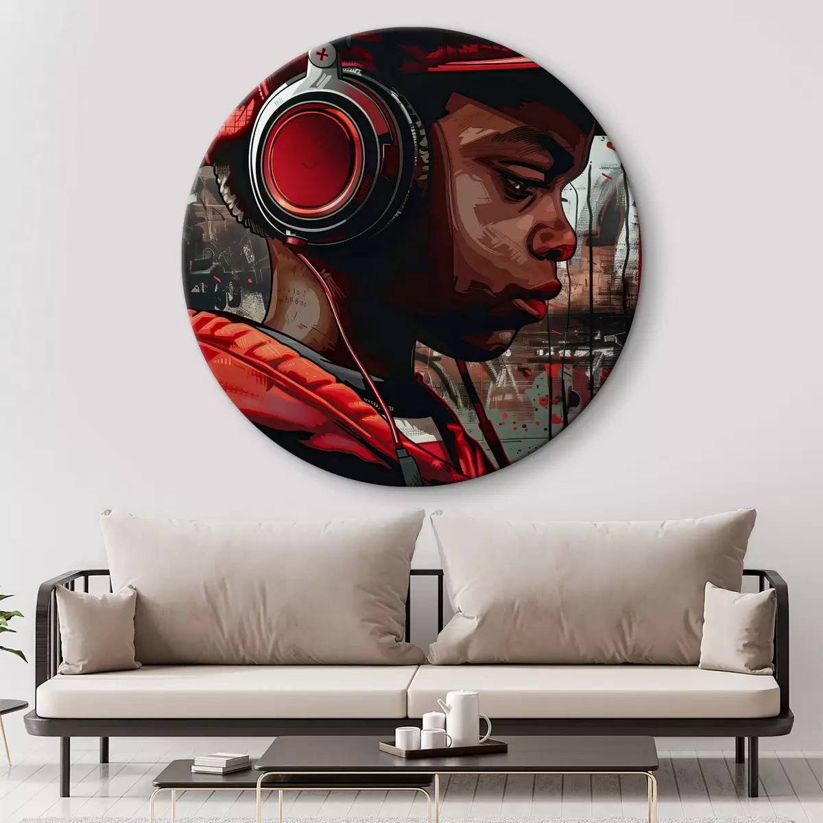 Кругла картина Хлопчик з навушниками r39143