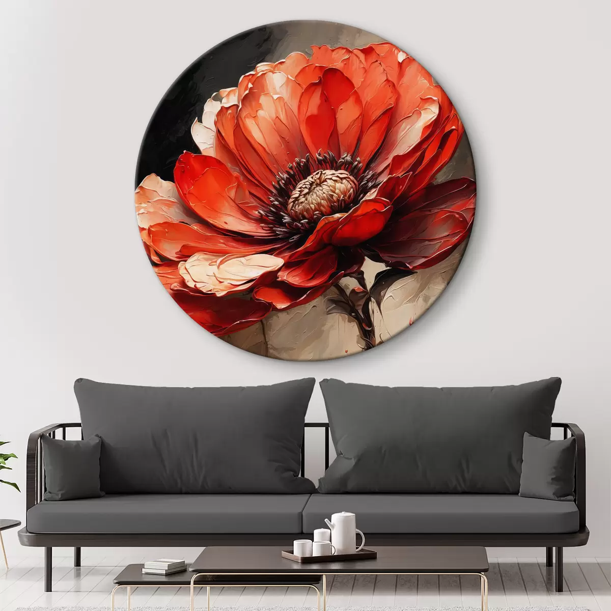 Кругла картина Червона квітка на темному тлі Nr r39172