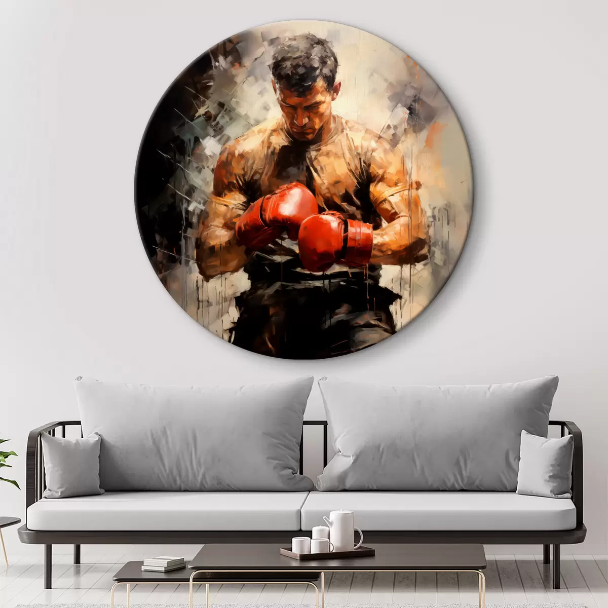 Кругла картина Боксер у червоних рукавичках олійного живопису Nr r39180