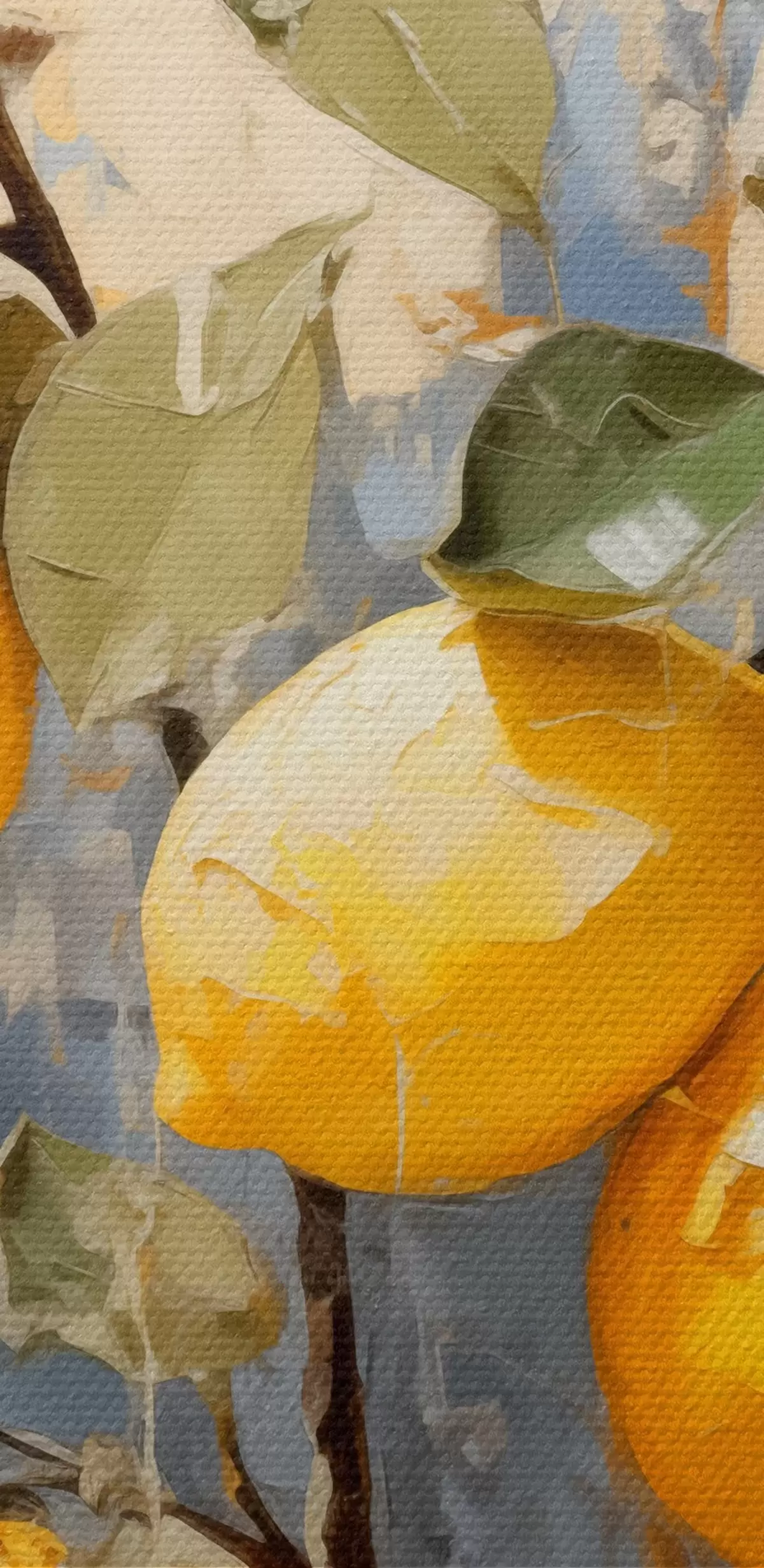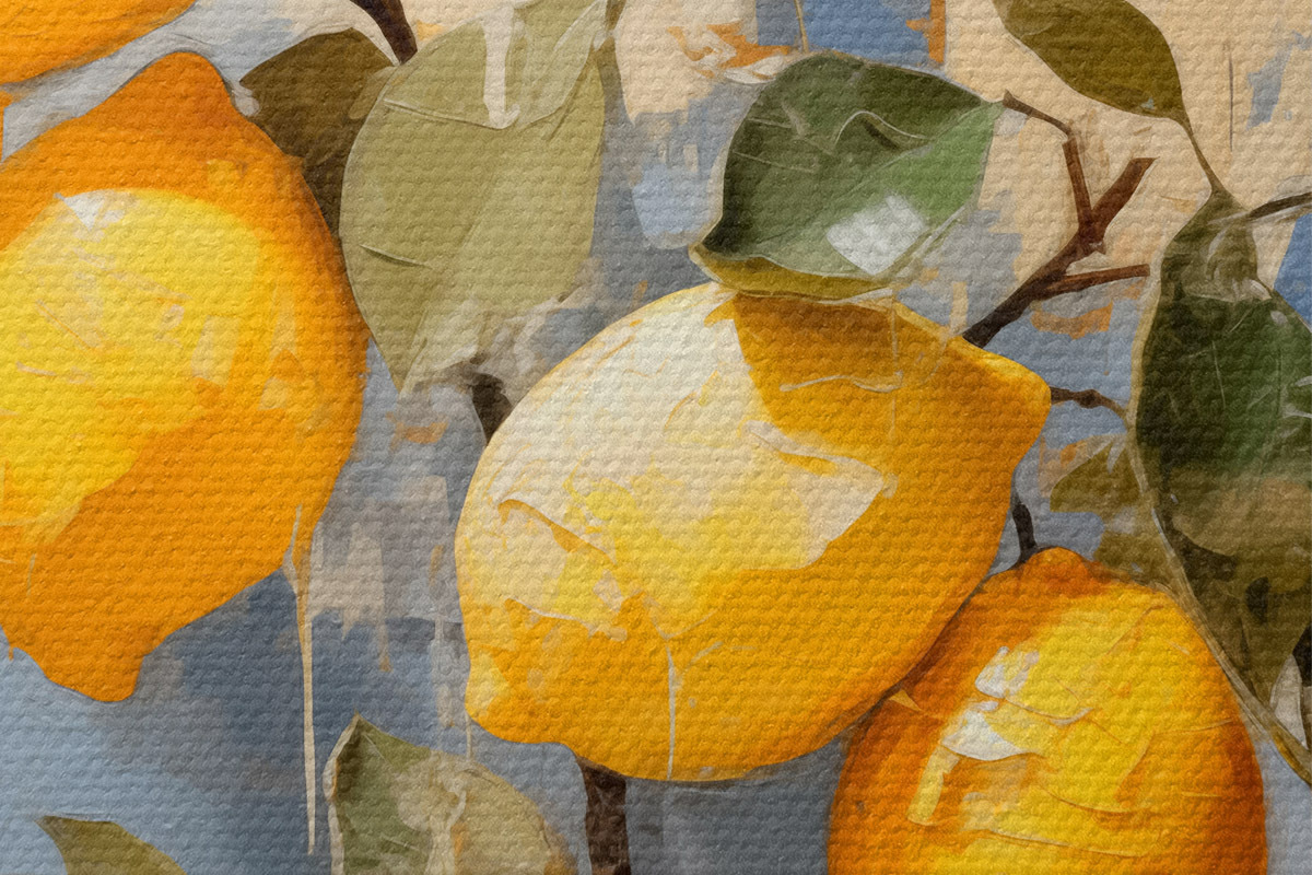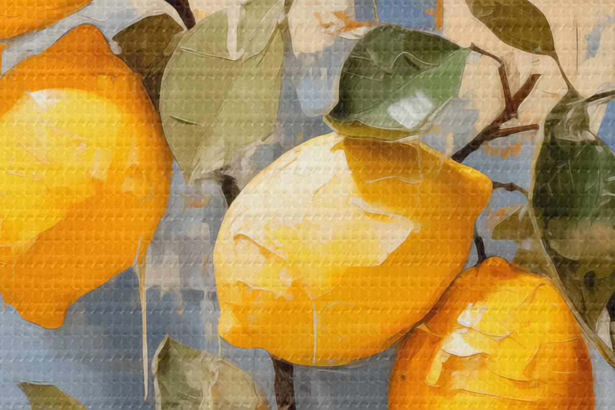 Кругла картина Гілка з стиглими лимонами олійного живопису абстрактного мистецтва, жовтого, синього та зеленого кольорів r39186