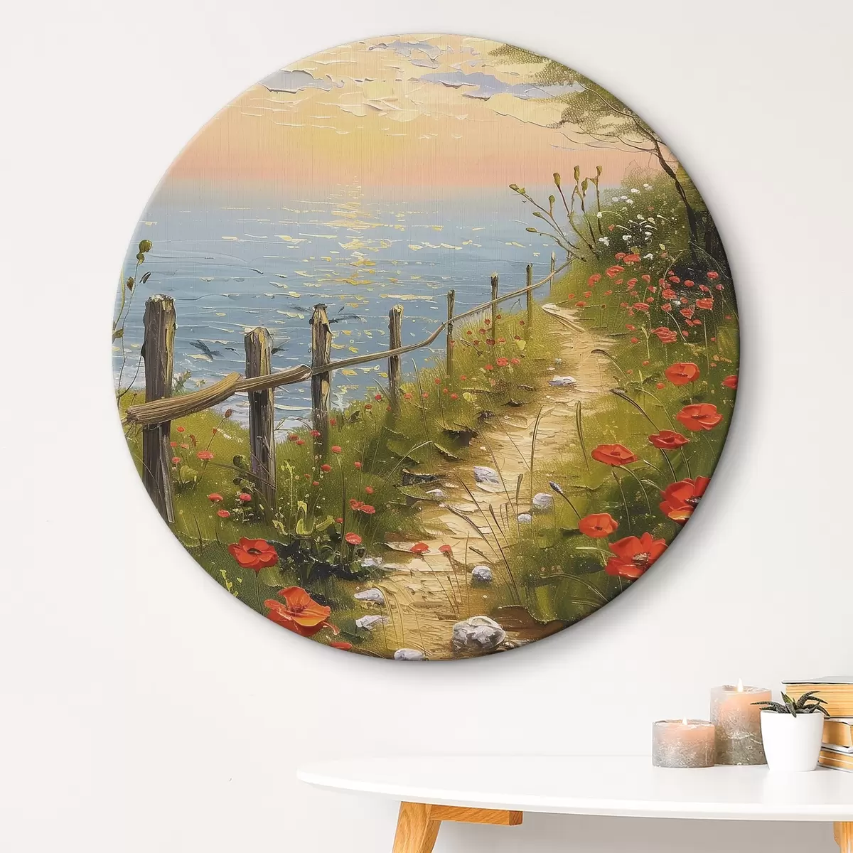 Кругла картина Маки вздовж стежки до води Nr r39201