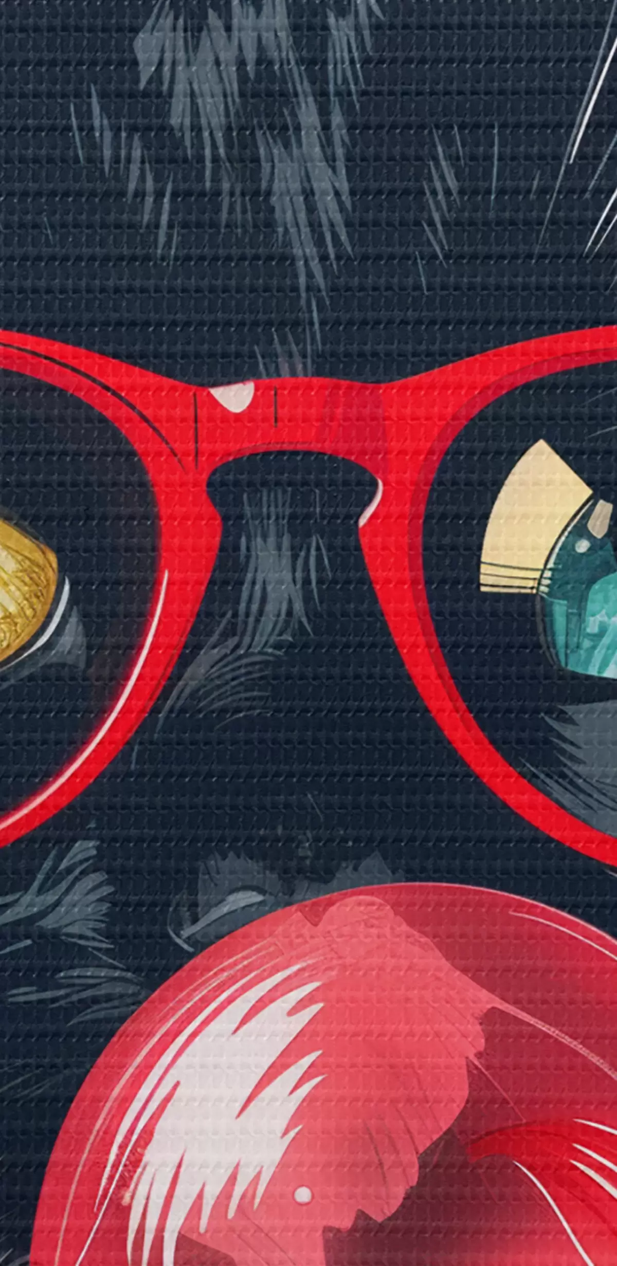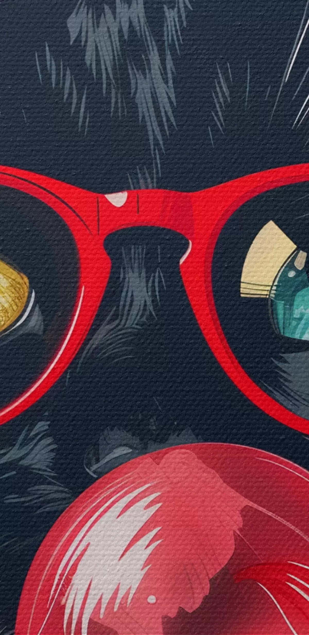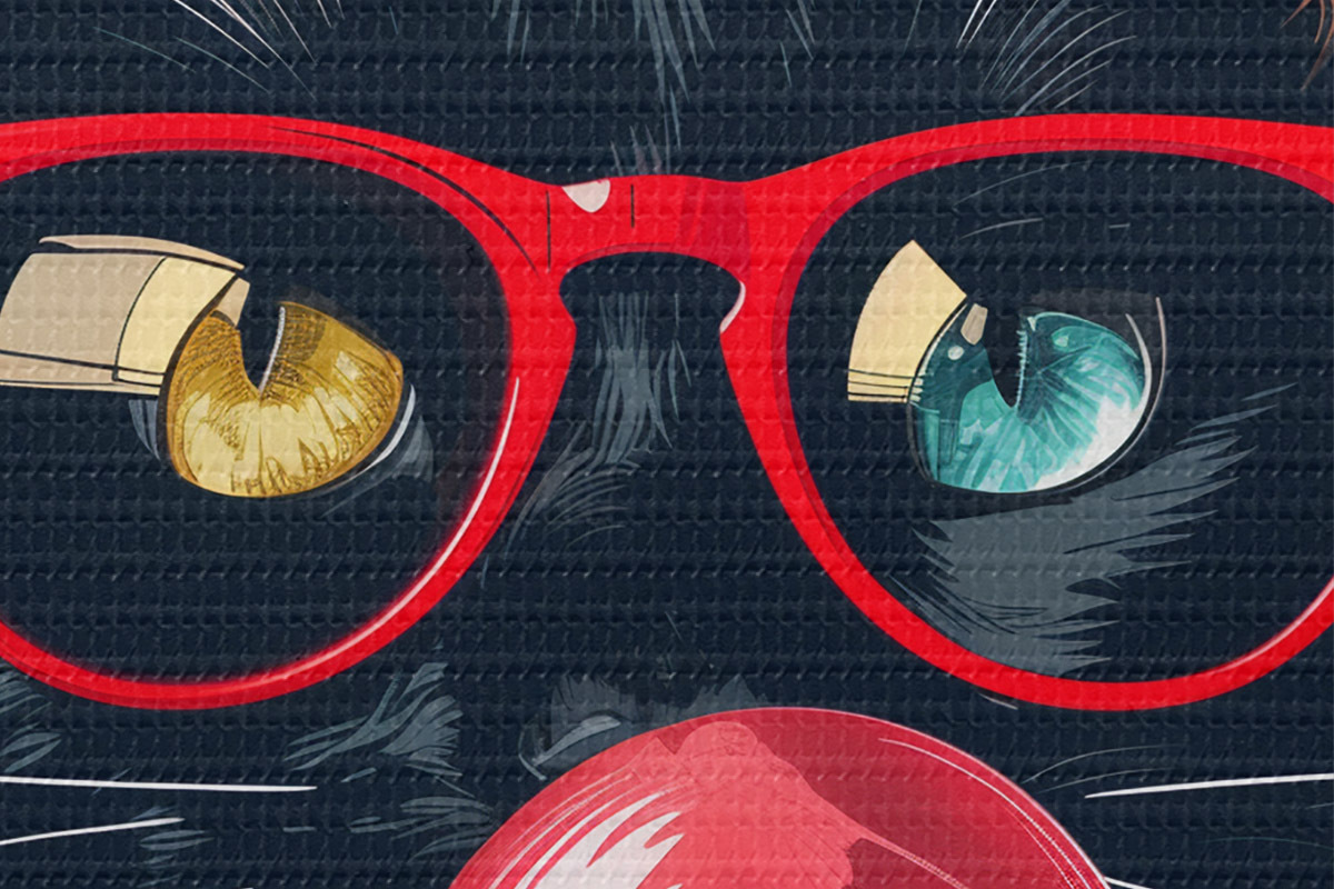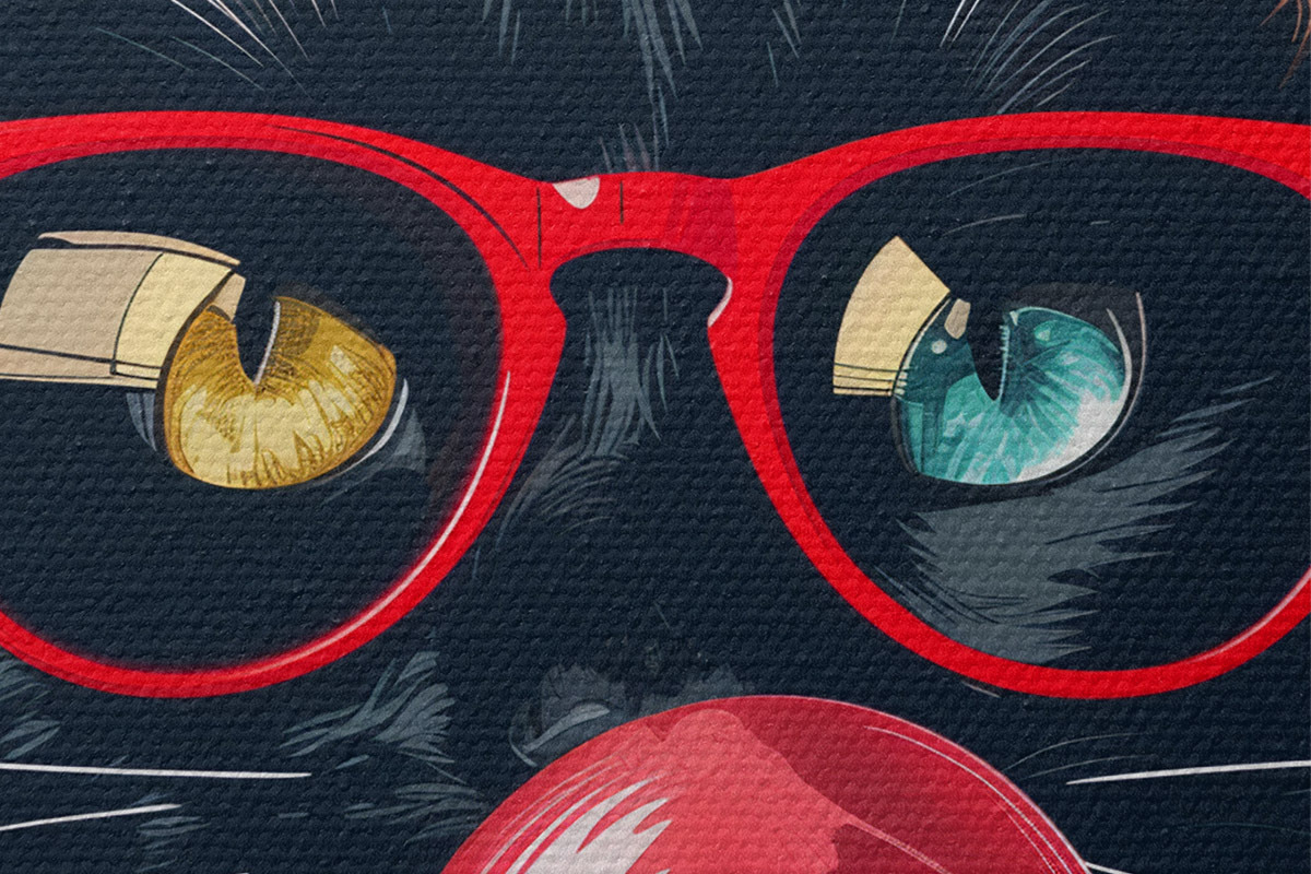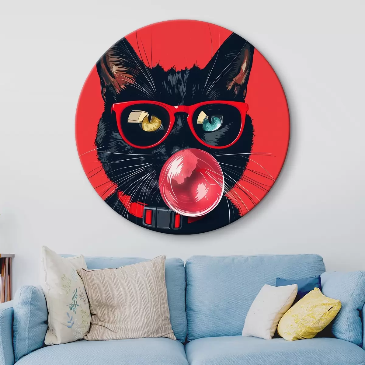 Кругла картина Чорний кіт в окулярах Nr r39224