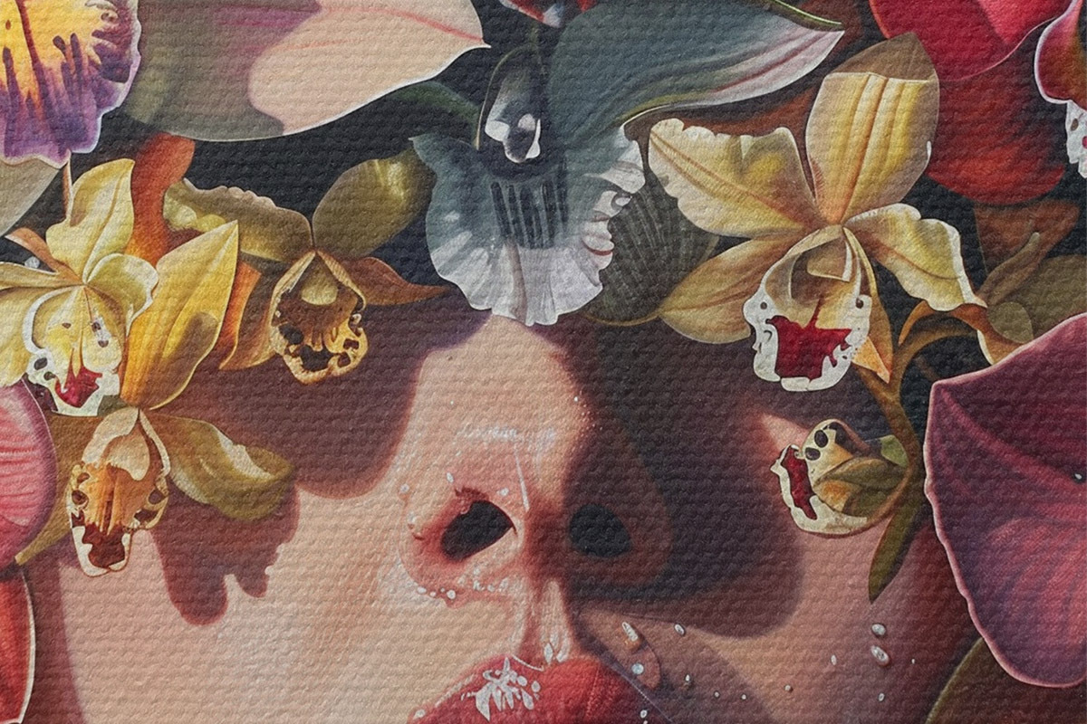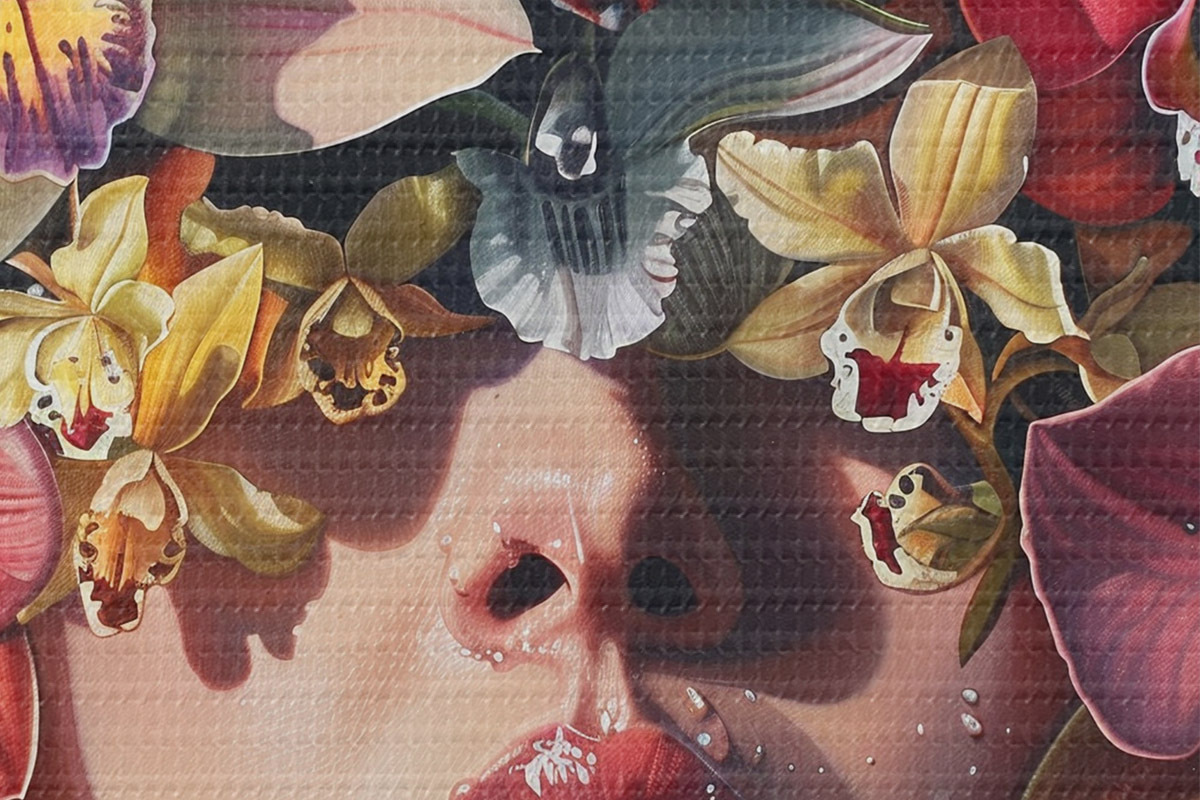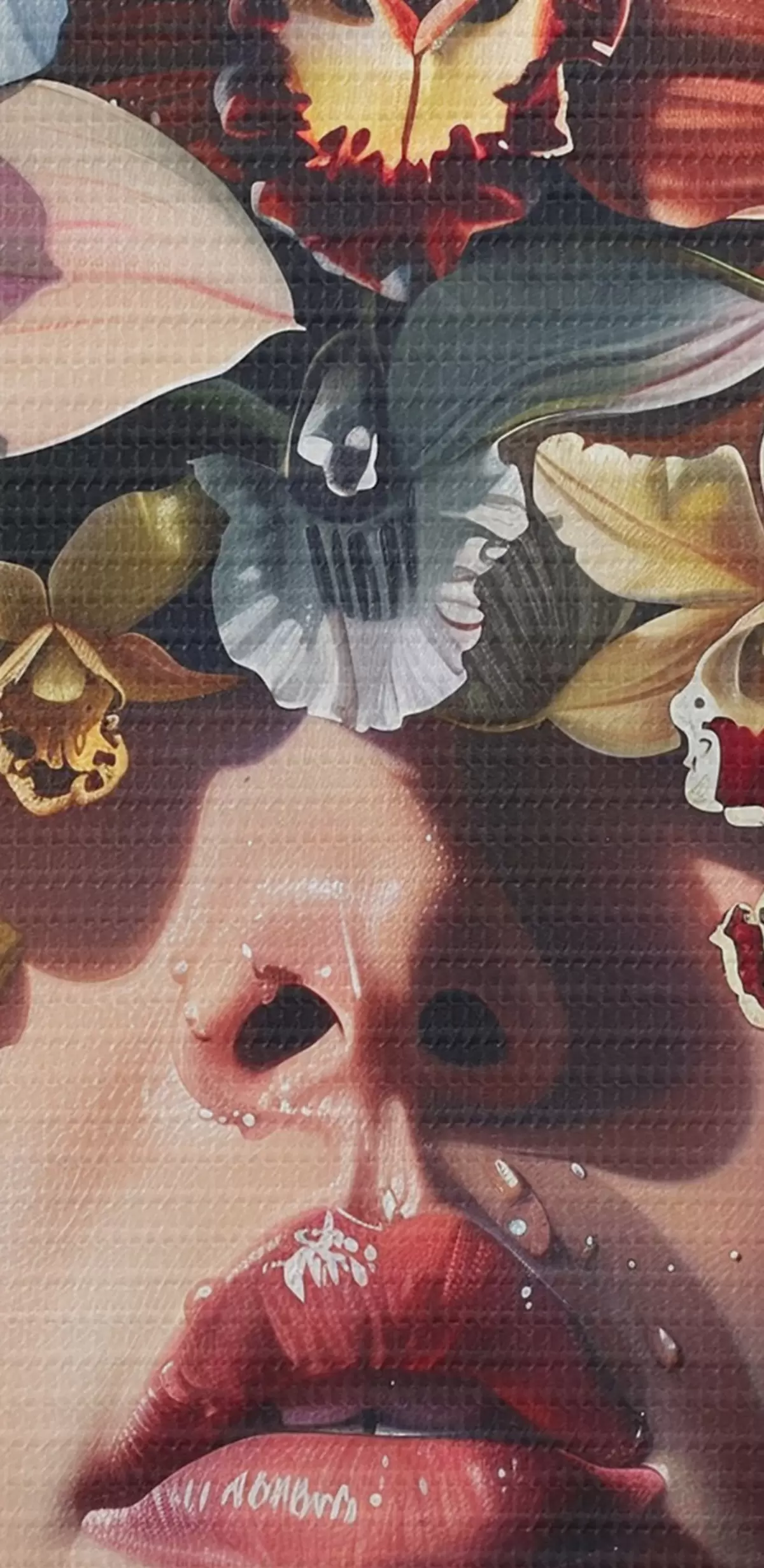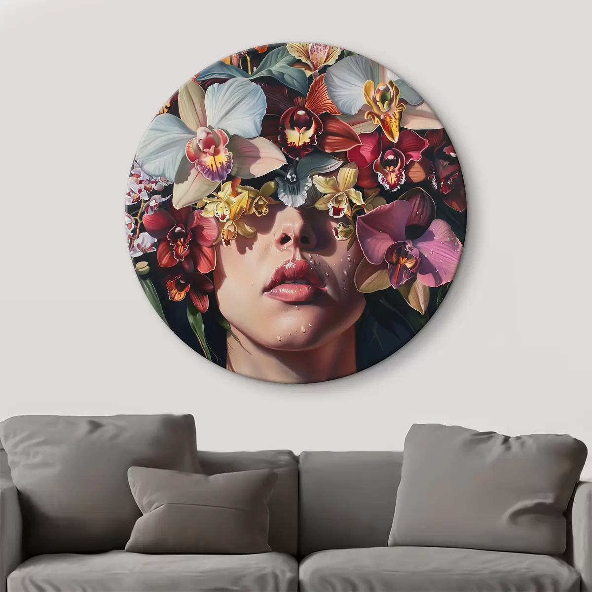 Кругла картина Дівчина і великі орхідеї Nr r39229