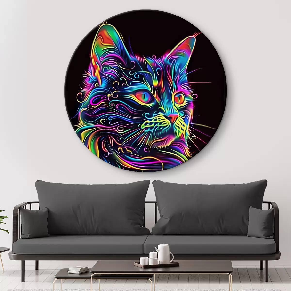 Кругла картина Різнокольоровий кіт r39311