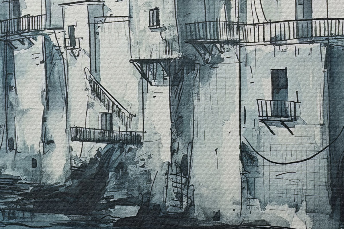 Кругла картина Акварельний ескіз міста на воді в синіх тонах r39323