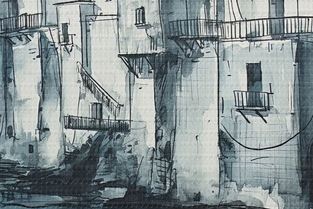 Кругла картина Акварельний ескіз міста на воді в синіх тонах Nr r39323