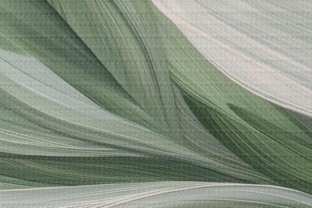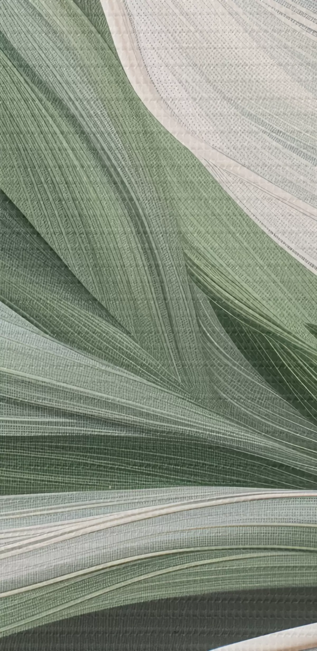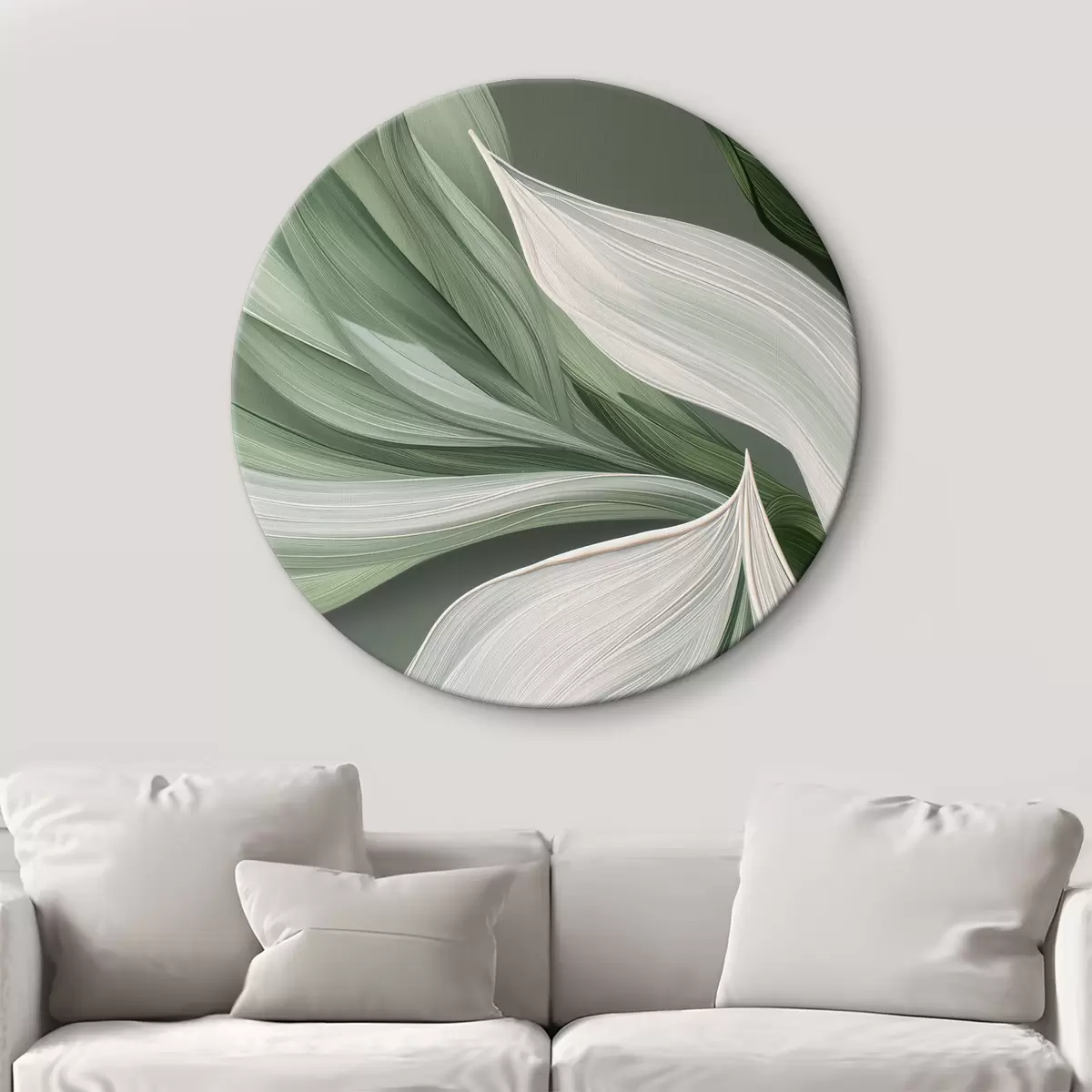 Кругла картина об'ємна абстрактна вуаль біло-зеленого кольору r39327