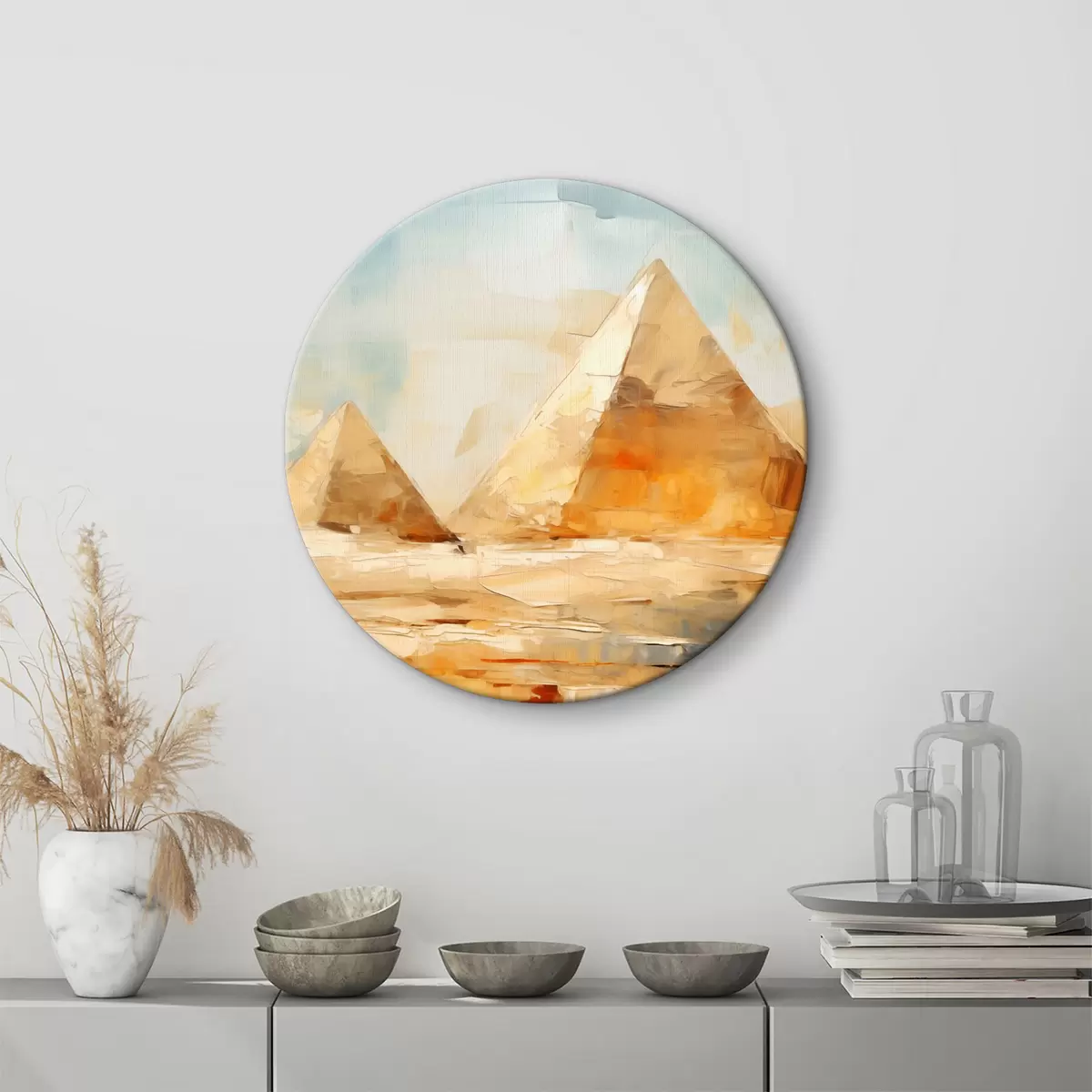 Кругла картина Дві єгипетські піраміди в пустелі на фоні синього неба, написаного маслом Nr r39330