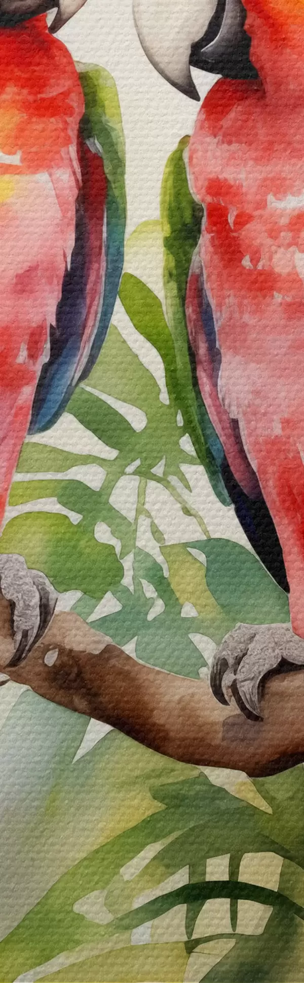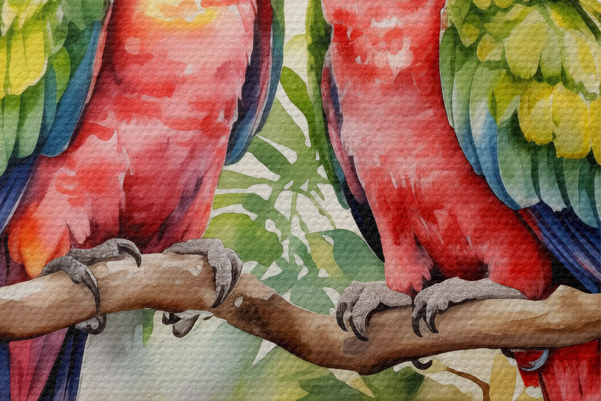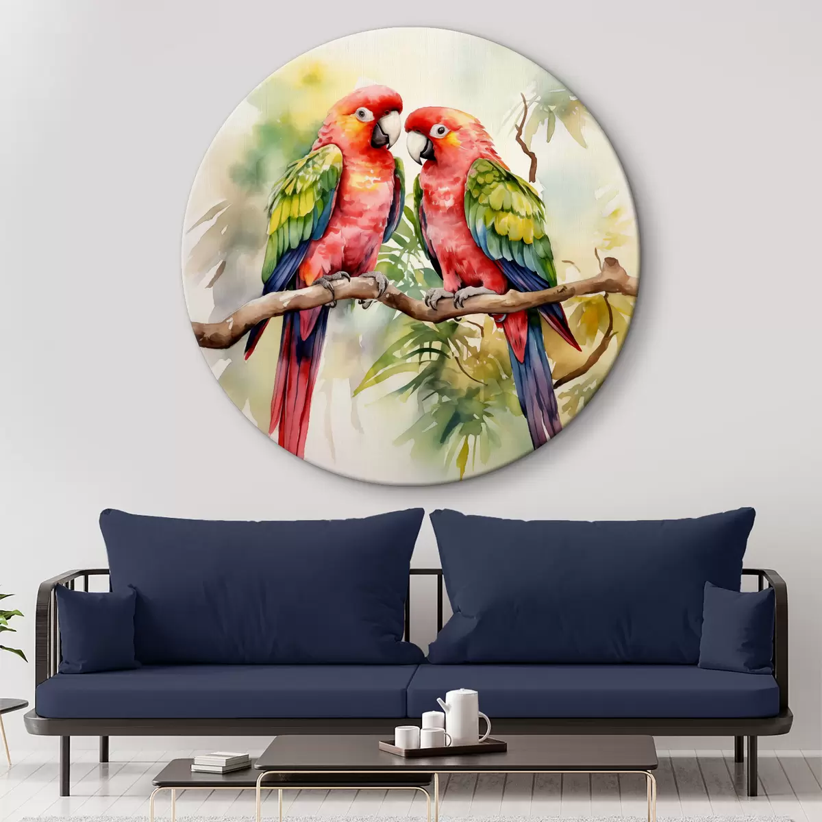 Кругла картина Два яскраві папуги ара сидять на одній гілці акварель Nr r39333