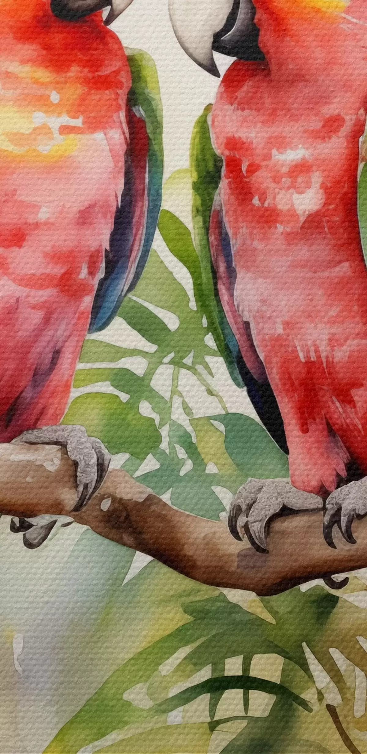 Кругла картина Два яскраві папуги ара сидять на одній гілці акварель Nr r39333