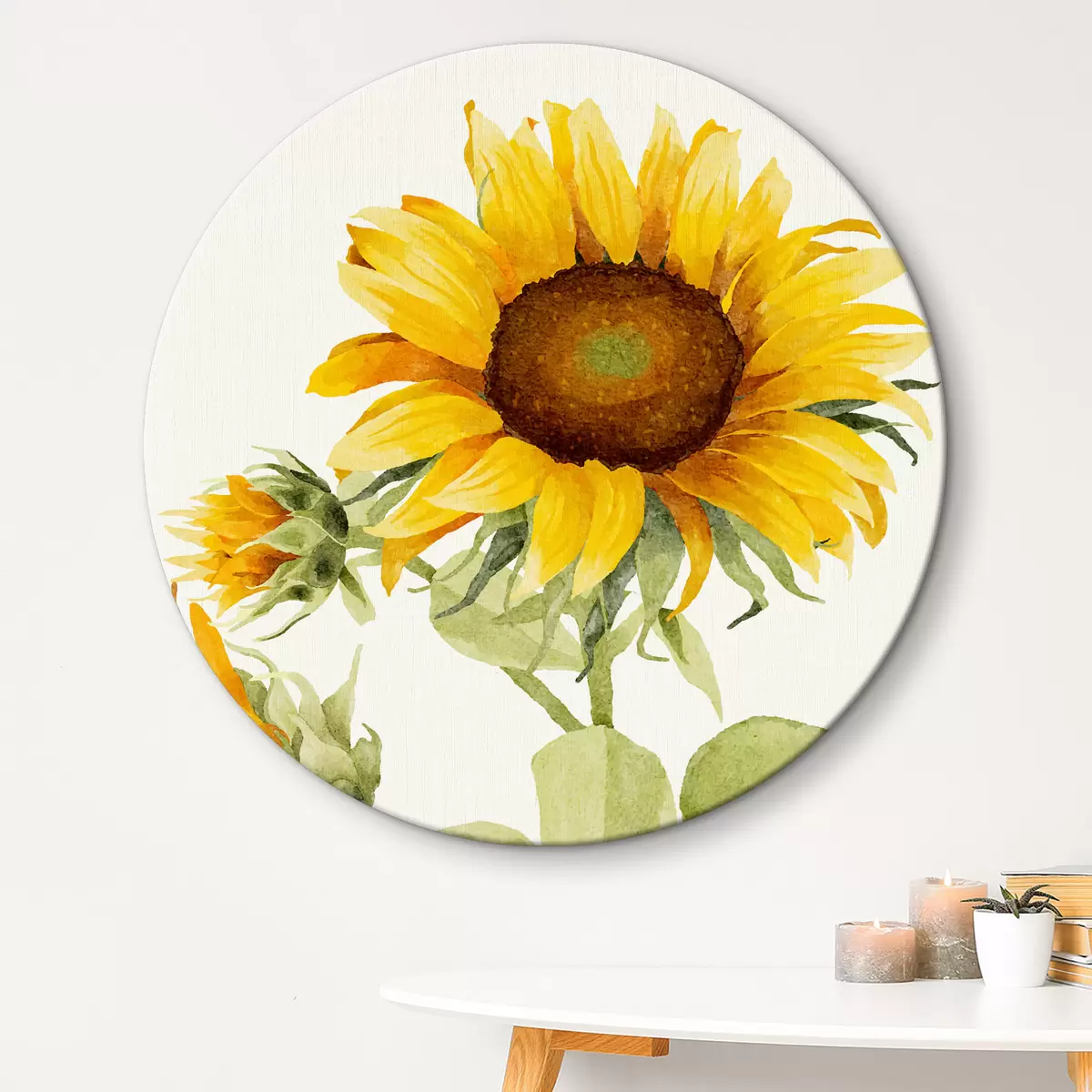 Кругла картина Яскравий акварельний соняшник Nr r39341