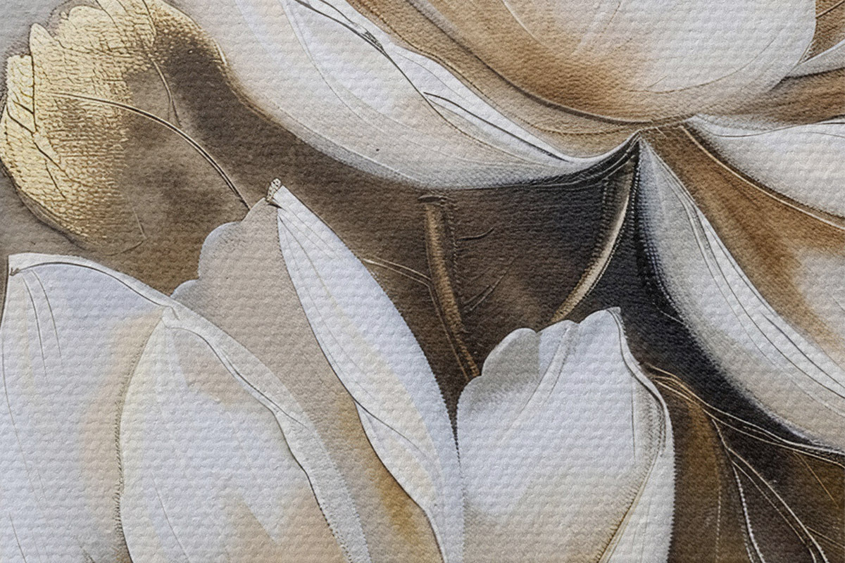 Для замовлення доступні три типи матеріалу: Економ Полотно - щільний і міцний матеріал для цифрового друку, ідентичний художньому полотну, водонепроникна поверхня, реалістичне відтворення деталей, матеріал середньої зернистості. Преміум полотно - фактура нагадує полотно художника (переплетені дрібні нитки). М'яке, деталізоване відтворення зображення на матовій поверхні. Еко-Преміум - високоякісне 100% бавовняне полотно. Завдяки натуральним бавовняним волокнам матеріал міцний і зносостійкий. Відмінна передача кольору та деталізація.