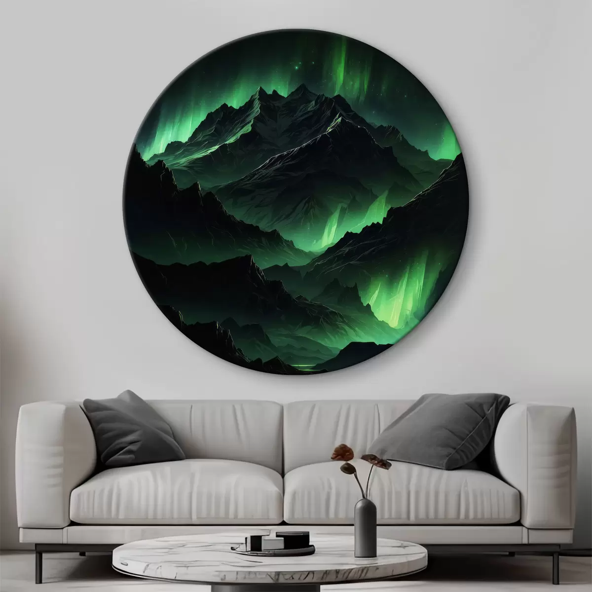 Кругла картина Чорні гори, освітлені північним сяйвом Nr r39363
