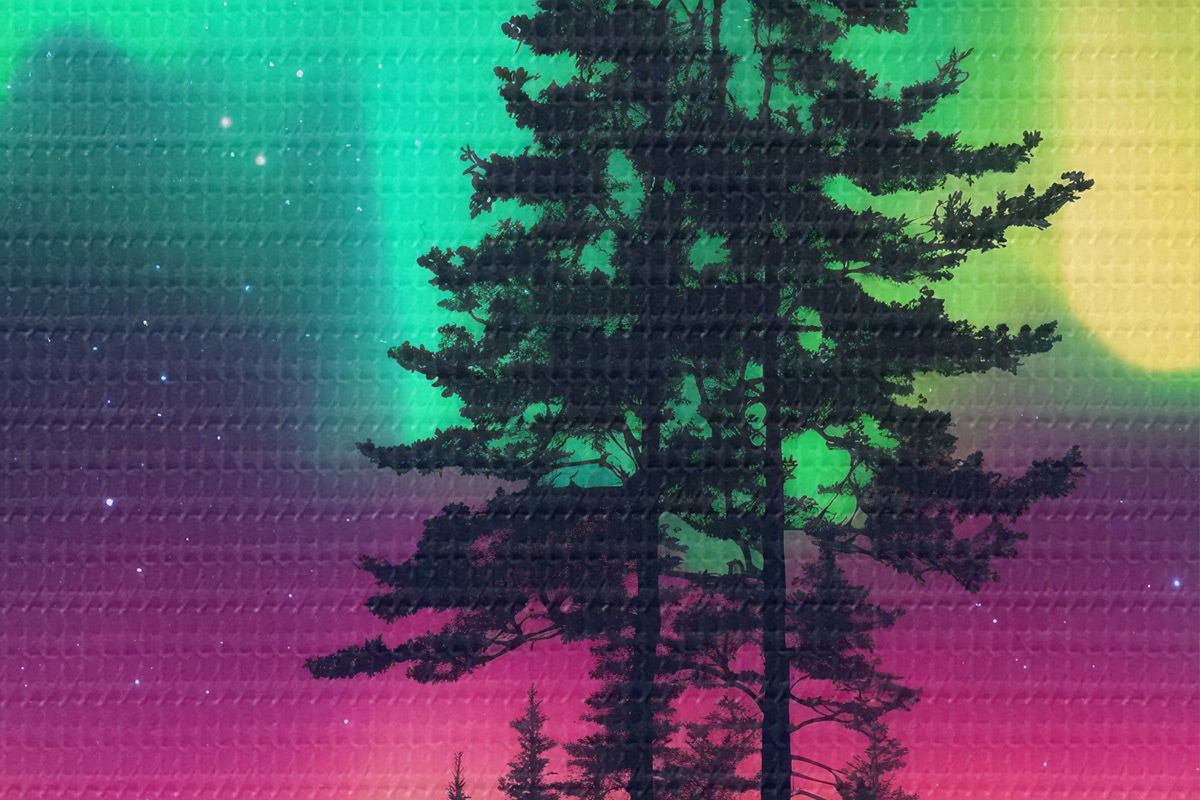 Кругла картина Північне сяйво над ялинками r39366