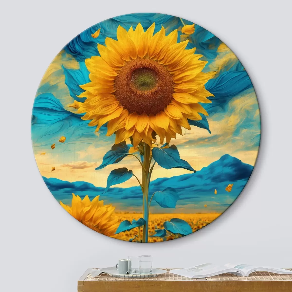 Кругла картина Поле соняшників над абстрактним небом Nr r39367